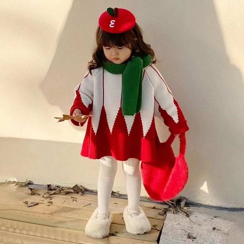 2024 봄과 가을 새로운 한국 스타일 소녀 귀여운 콘트라스트 컬러 니트웨어 어린이 재미 컬러 매칭 후드 크리스마스 코트 트렌디