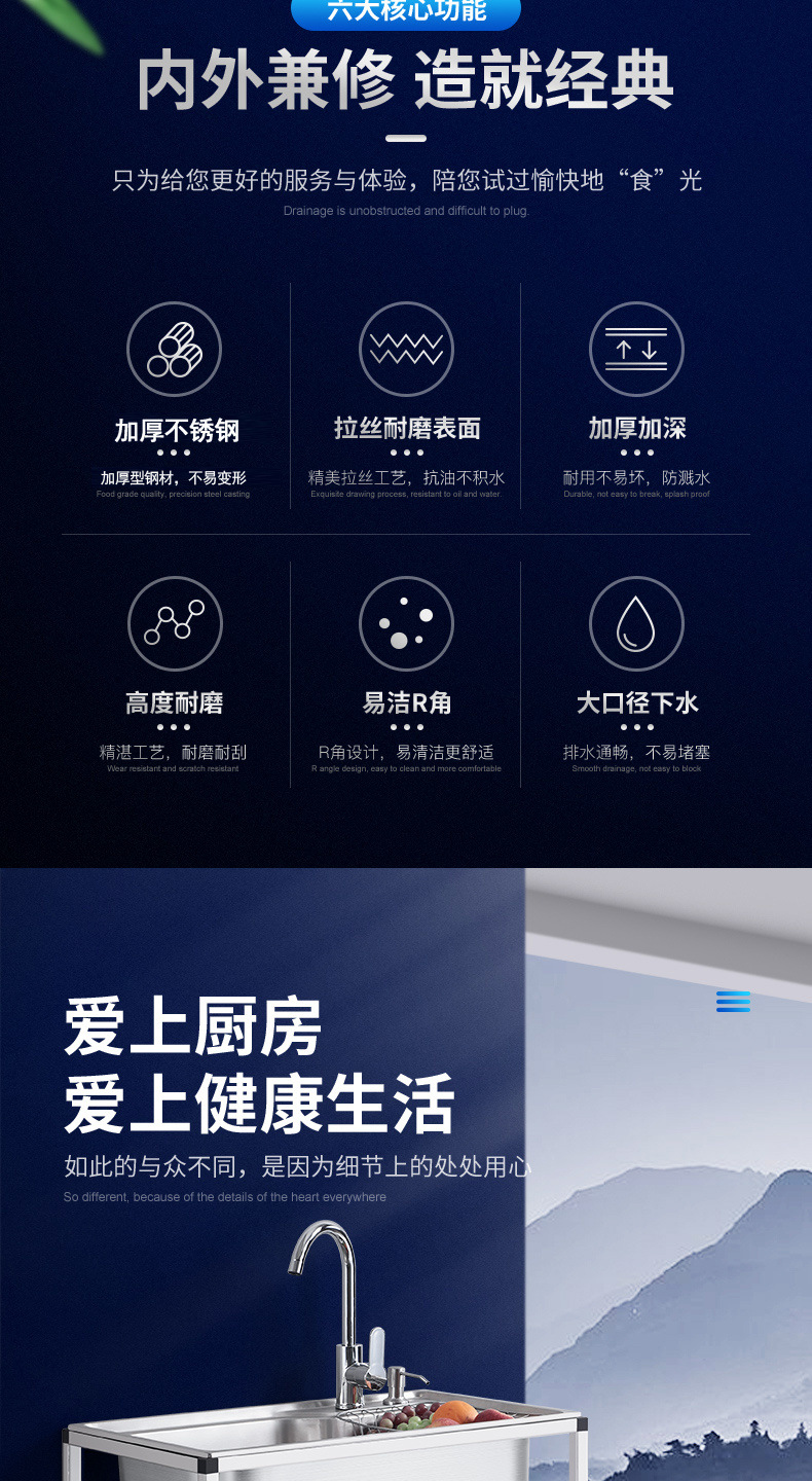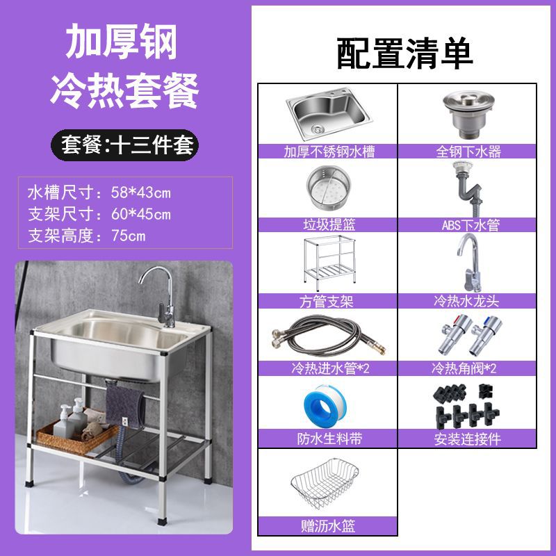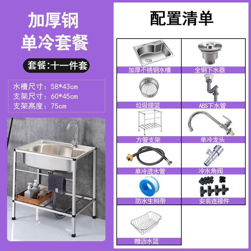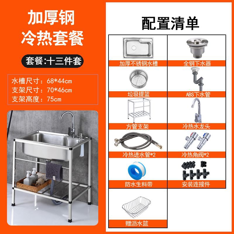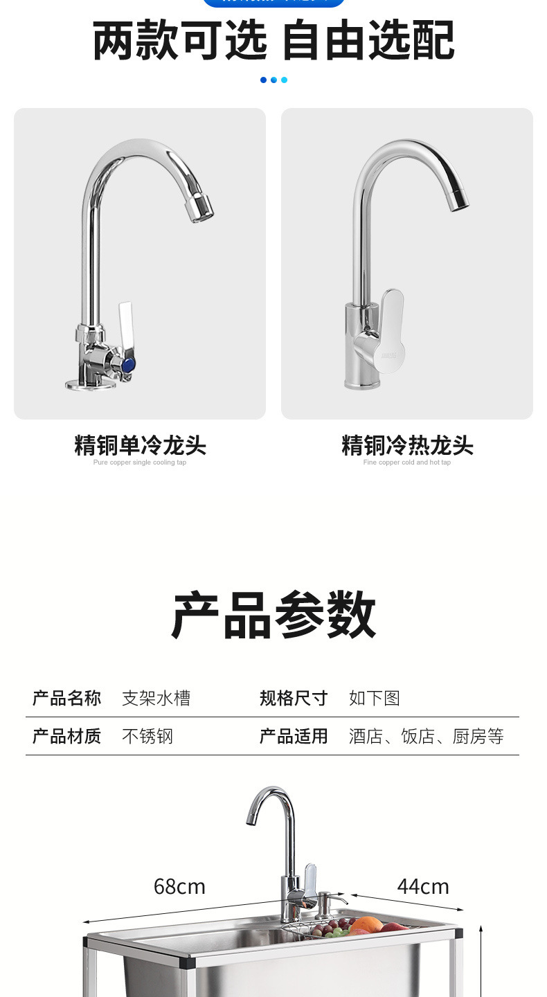 • ≮∥[단일 냉각 모델] 싱크대 + 브래킷 + 단일 냉각 수도꼭지 - [B 사각 브래킷] 두꺼운 단일 슬롯 68*44