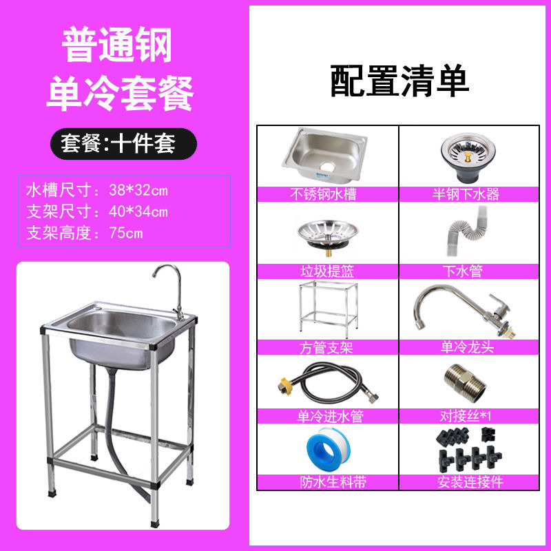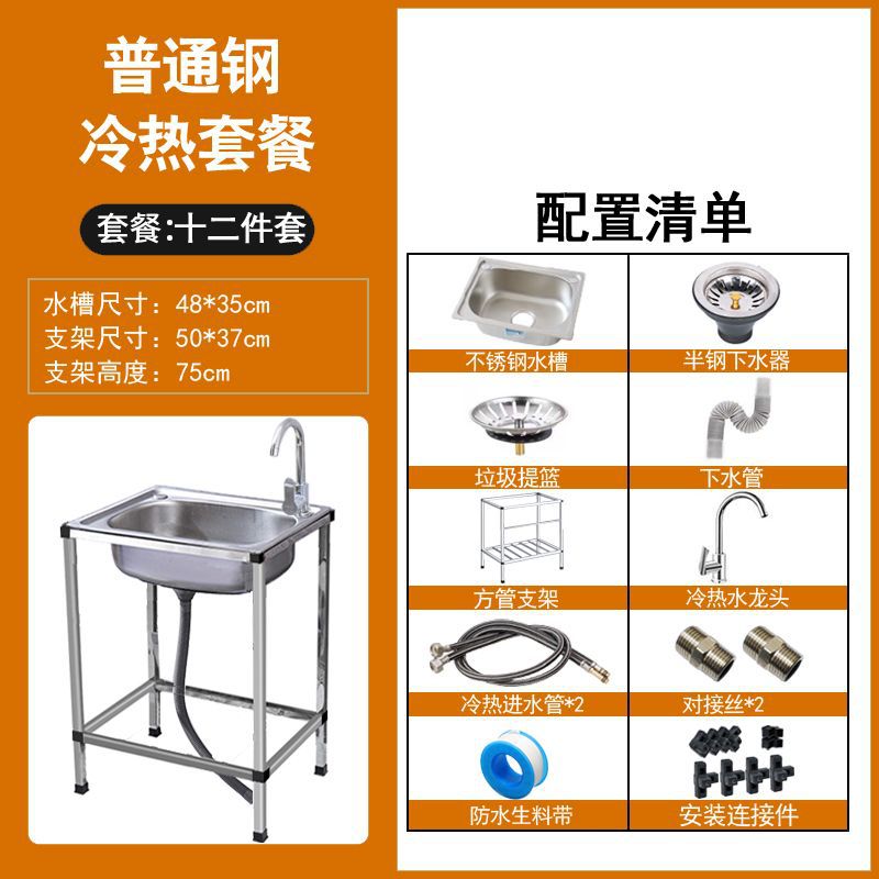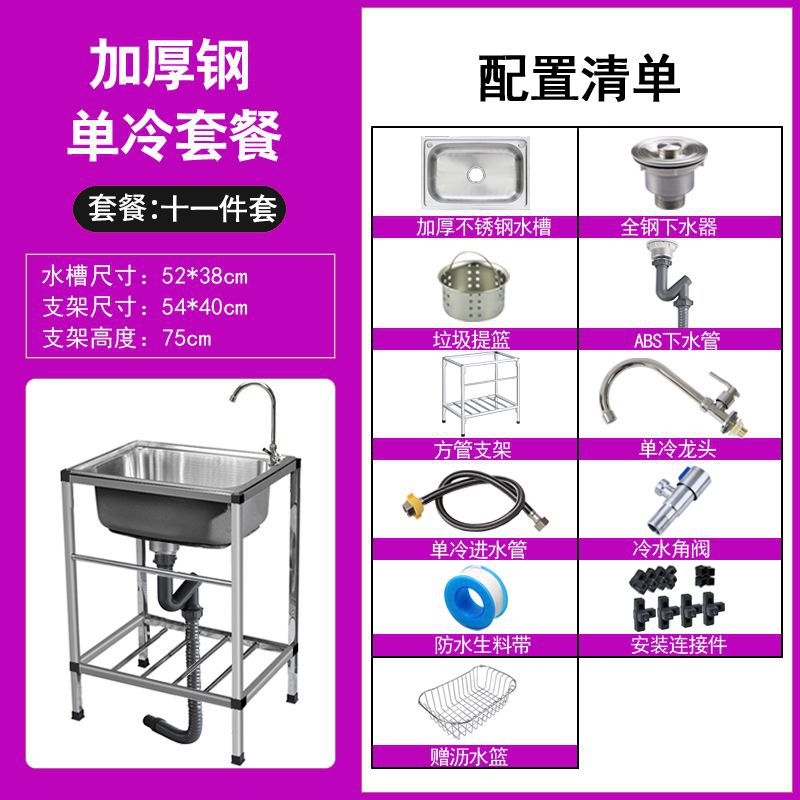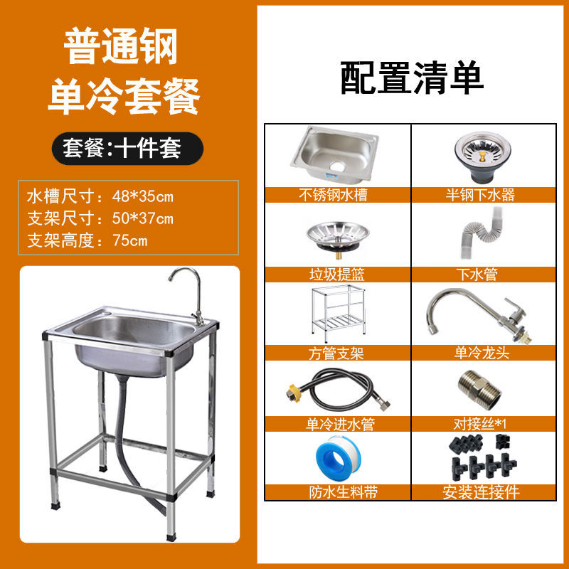 • ≮∥[단일 냉각 모델] 싱크대 + 브래킷 + 단일 냉각 수도꼭지 - [사각형 브래킷] 일반 단일 슬롯 48*35