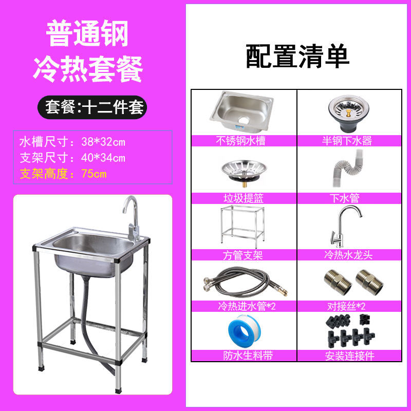 • ≮∥[단일 냉수 모델] 싱크대 + 브래킷 + 단일 냉수 수도꼭지 - [사각 브래킷] 일반 단일 슬롯 38*32