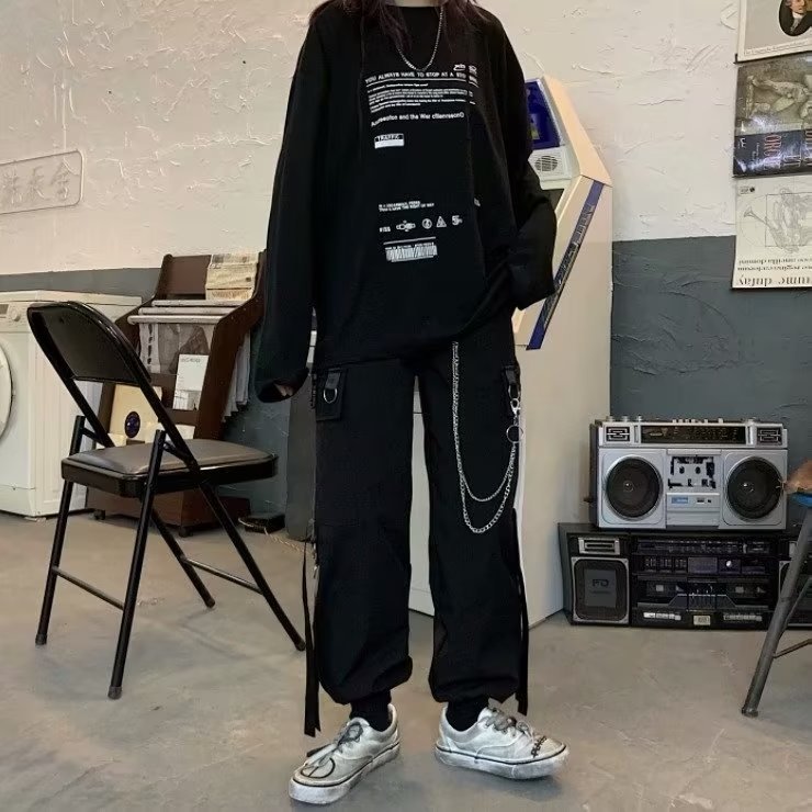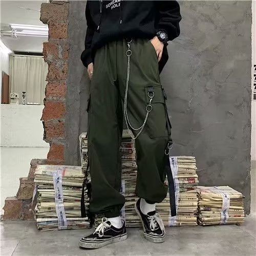 스트레이트 교수형 체인 트렌디 한 브랜드 느슨한 캐주얼 바지 가을 청소년 인기 커버 바지 유행 다리 바지 단색 새로운 도착 남성스토어 가기