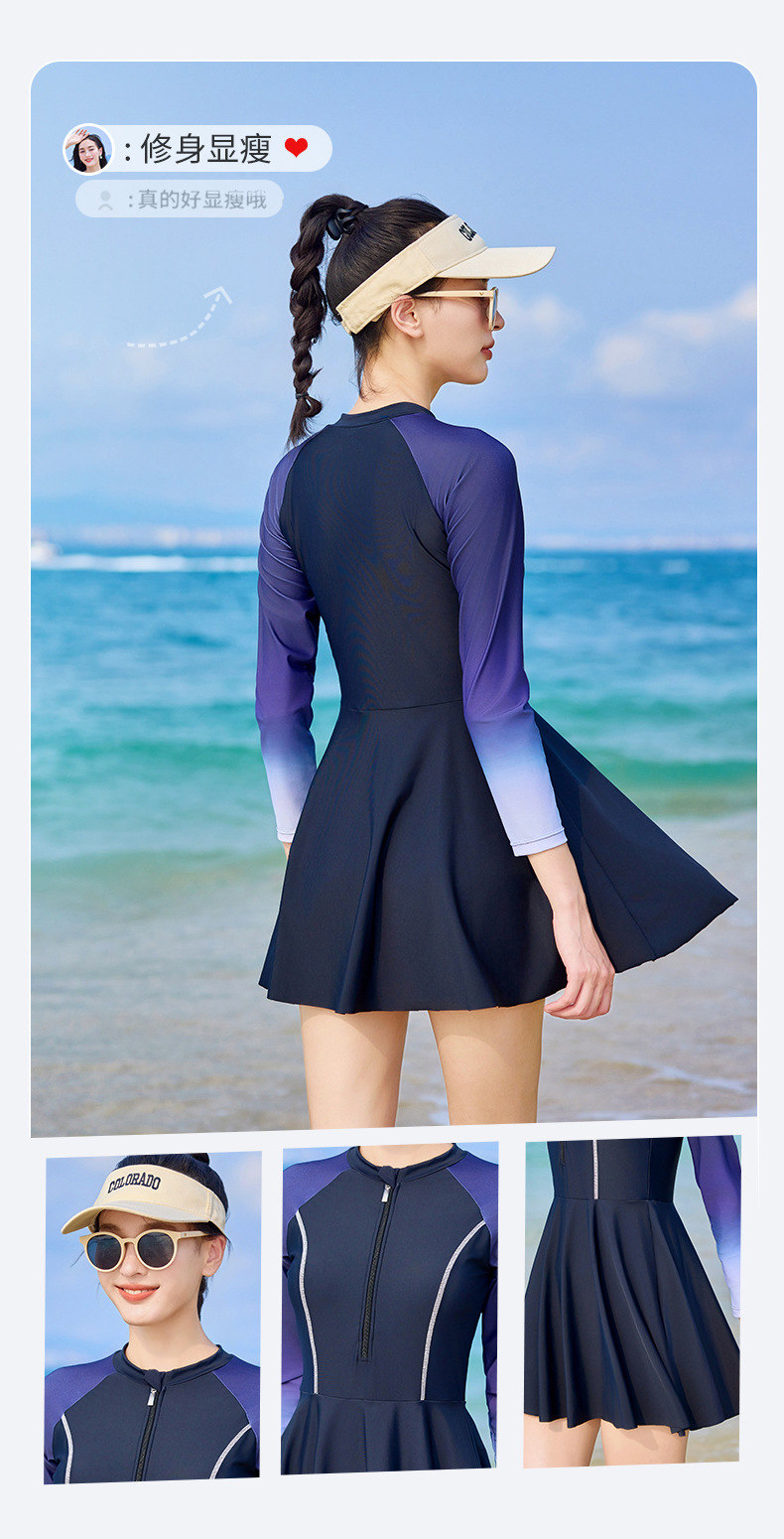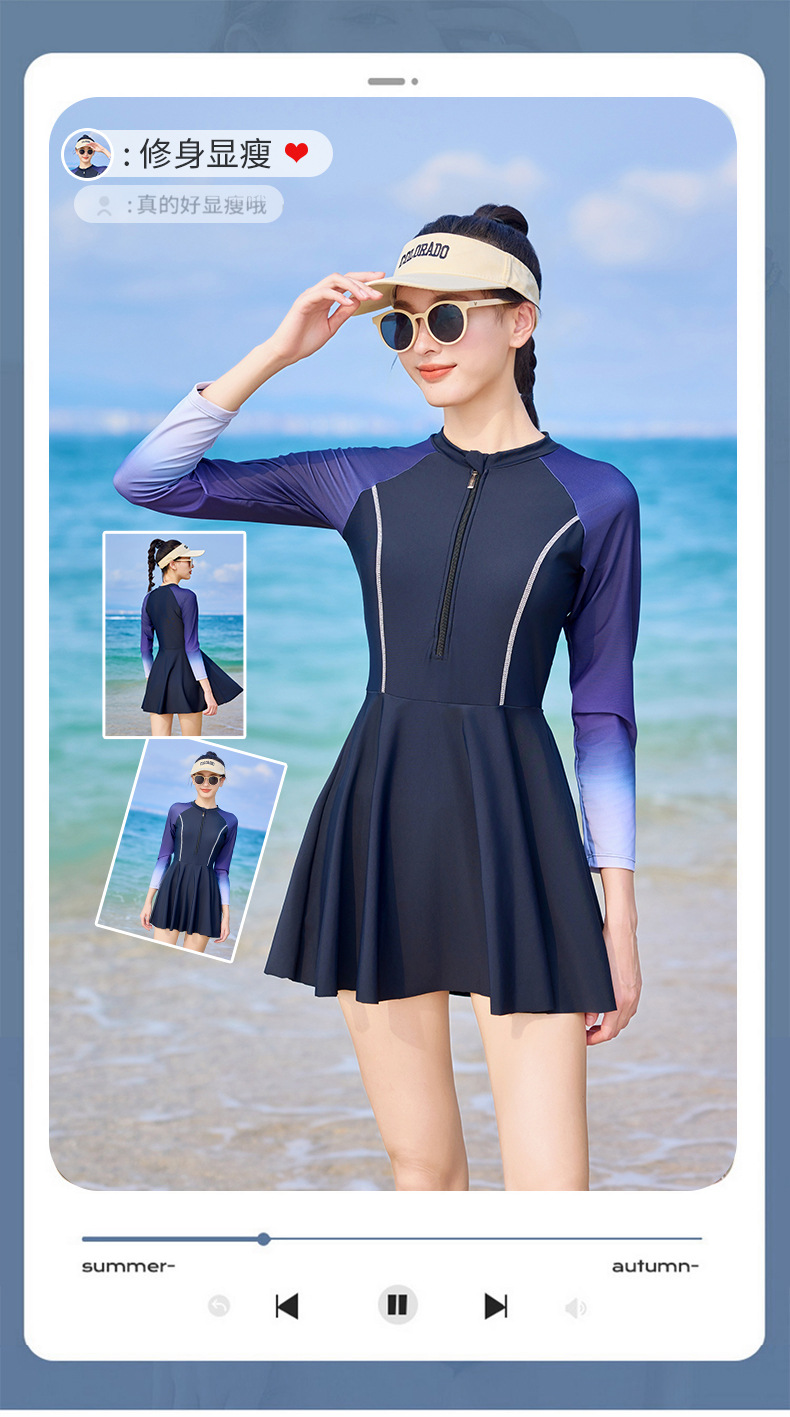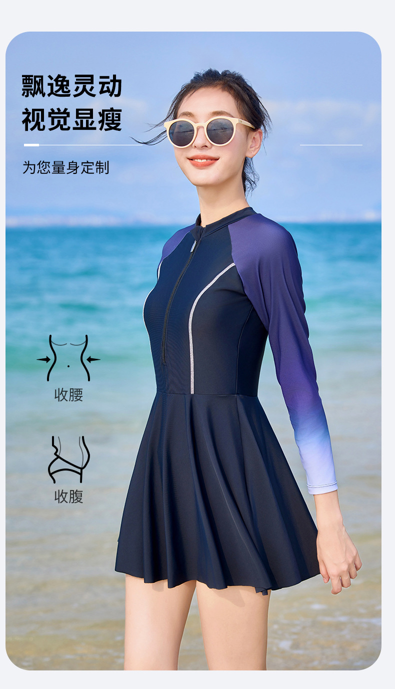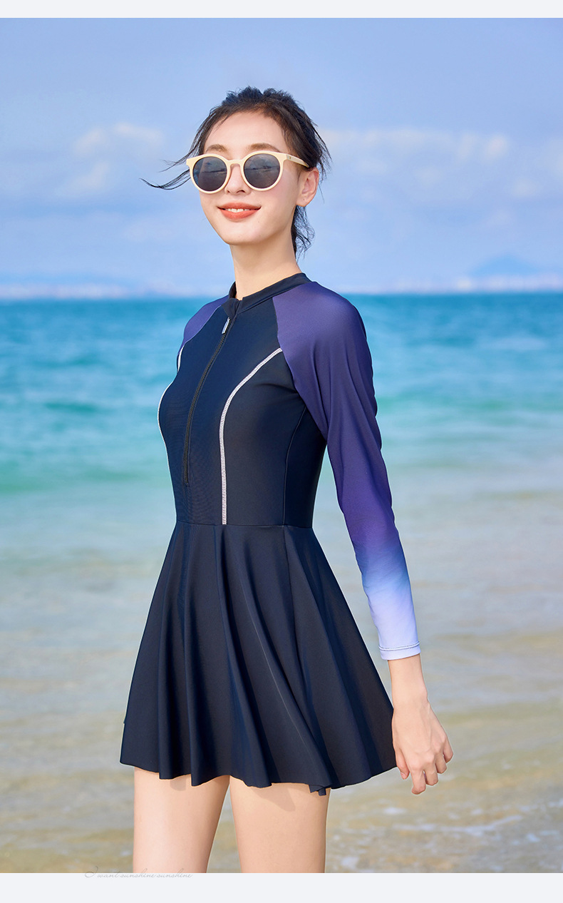 2025 새로운 여성 수영복 긴 원피스 긴 소매 수영복 스포츠 캐주얼 보수적 복고풍 수영복 점프