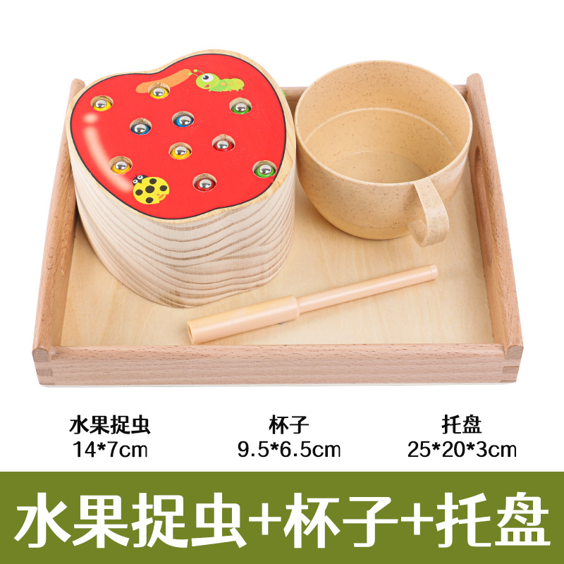 몬테소리 교구 손과 눈의 협응 클립 애플 유치원 1~3세 어린이가 곤충을 잡고 낚시 나사 생활스토어 가기