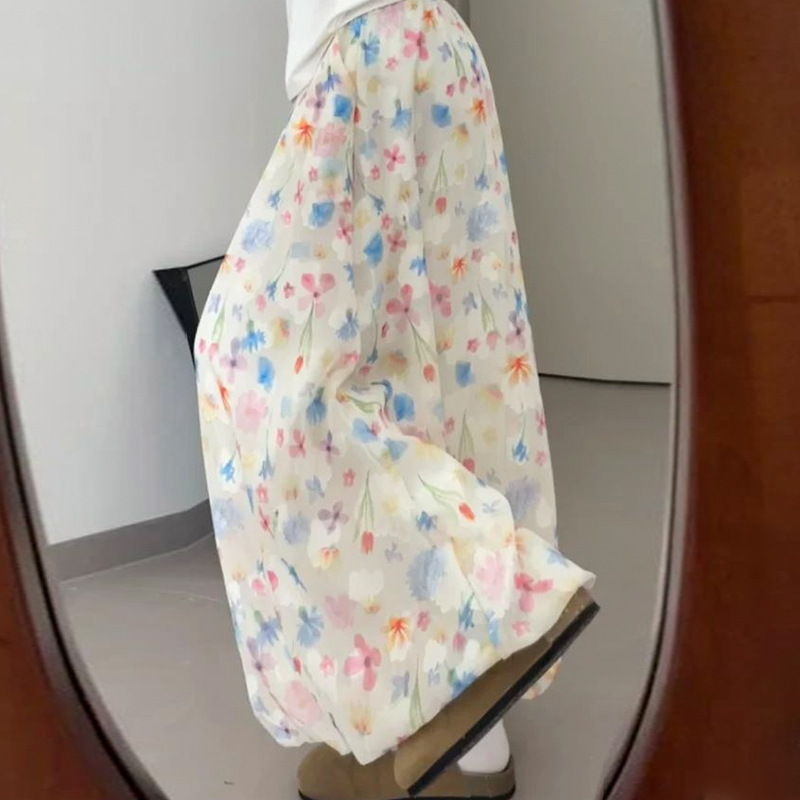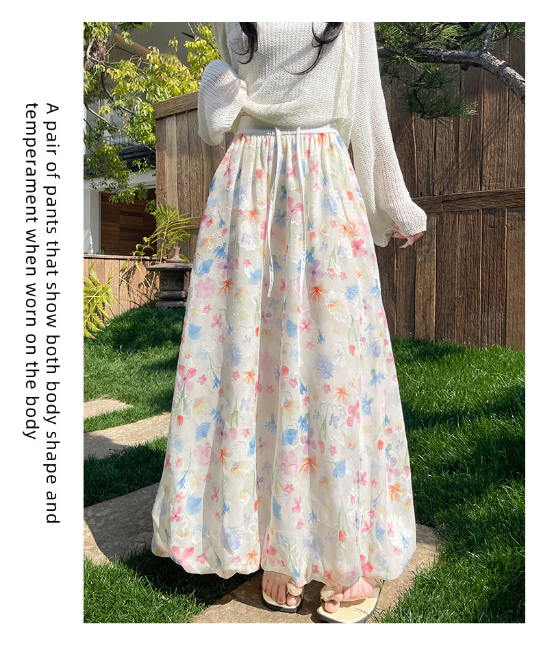 화이트 버드 스커트 여성 여름 새로운 높은 허리 슬리밍 A 라인 스커트 고급 꽃 치마