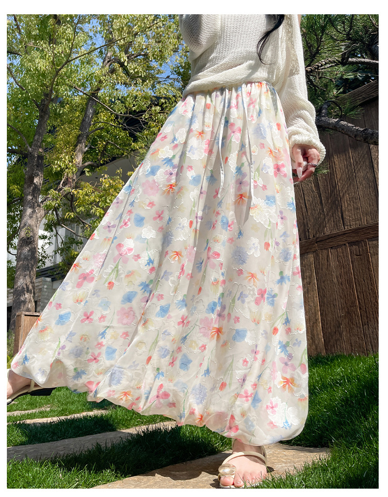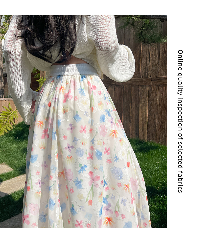 화이트 버드 스커트 여성 여름 새로운 높은 허리 슬리밍 A 라인 스커트 고급 꽃 치마스토어 가기