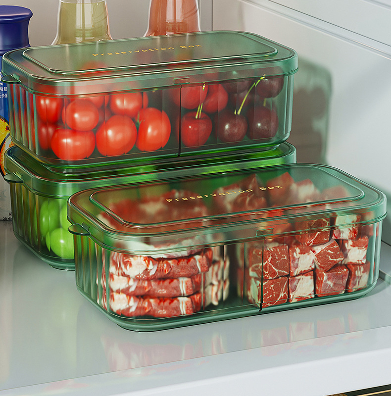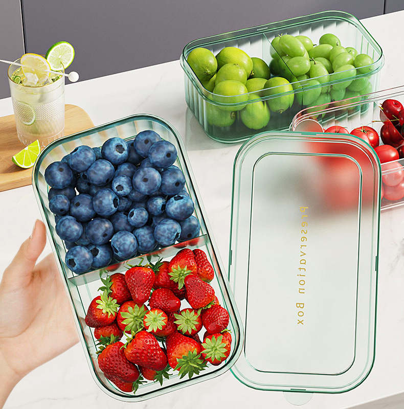 가정용 신선한 보관 상자 두 배 구획 식품 저장 무미 냉장고 냉장 야채와 과일 신선한 다기능 도시락스토어 가기