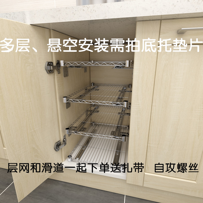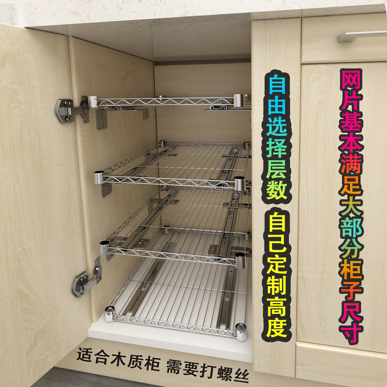 주방 바구니 캐비닛 개조 접시 랙 diy 보관 랙 수제 옷장 서랍 메쉬 바구니 슬라이드 레일 보관 랙