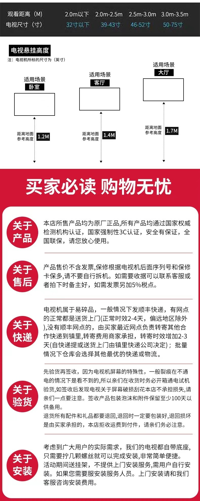 • 50A급 화면 TV 버전 [무료 베이스 + 벽걸이]