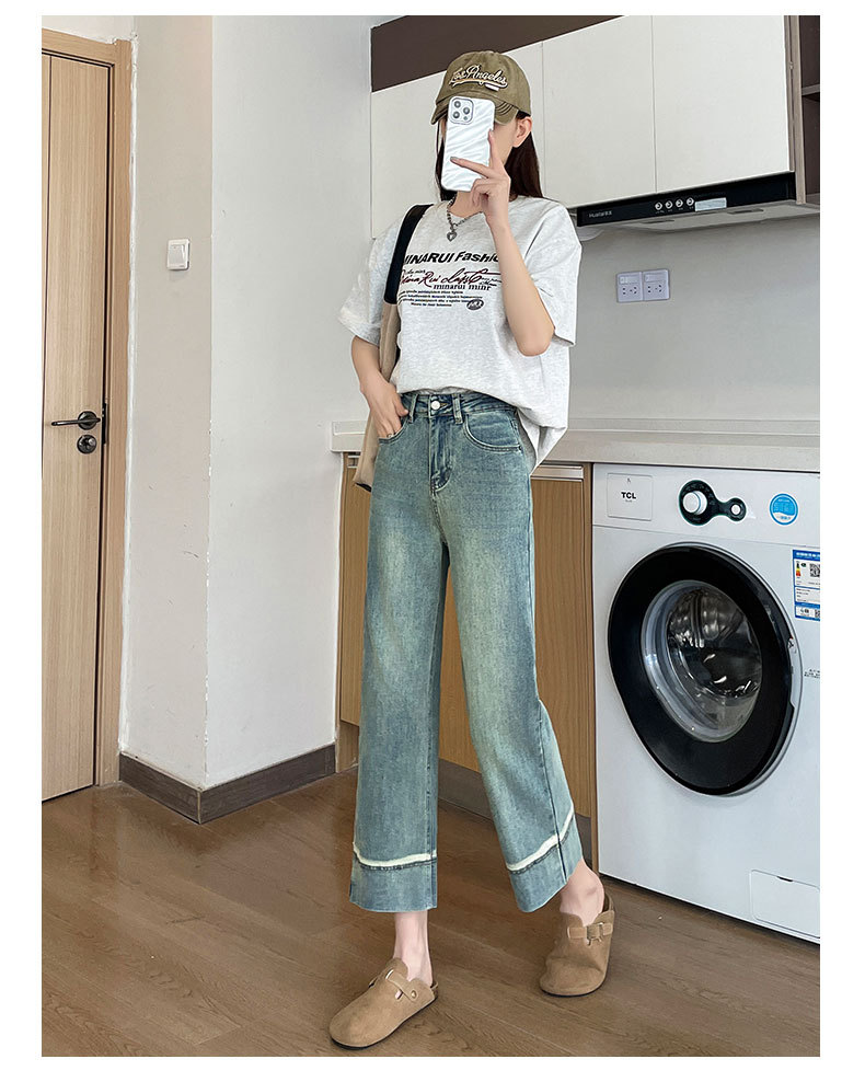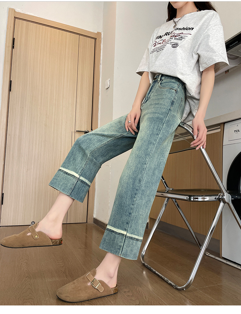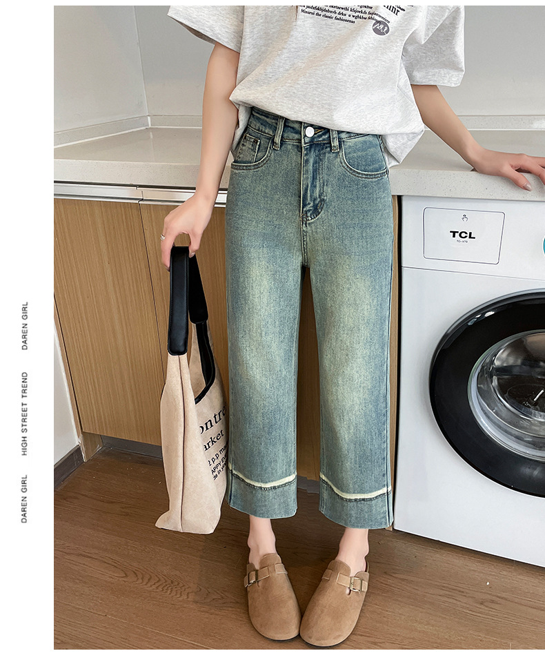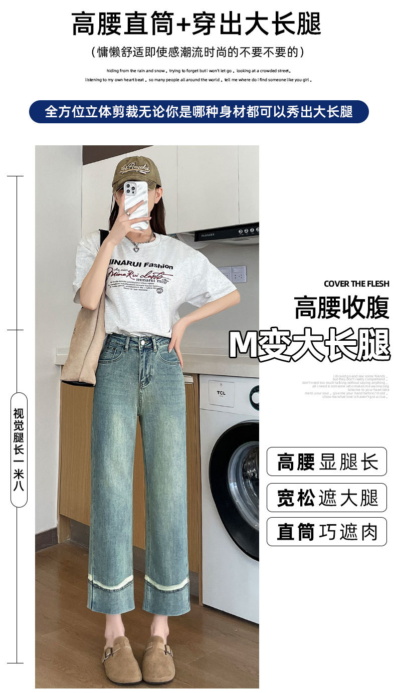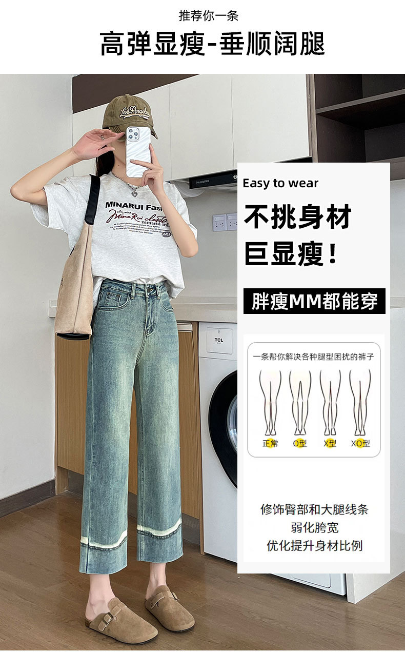 몸집이 작은 여성용 9부 청바지, 루즈한 와이드 레그, 살을 커버하고 날씬해 보이는, 복고풍, 향수를 불러일으키는 여성용 데님 팬츠, 하이웨이스트스토어 가기