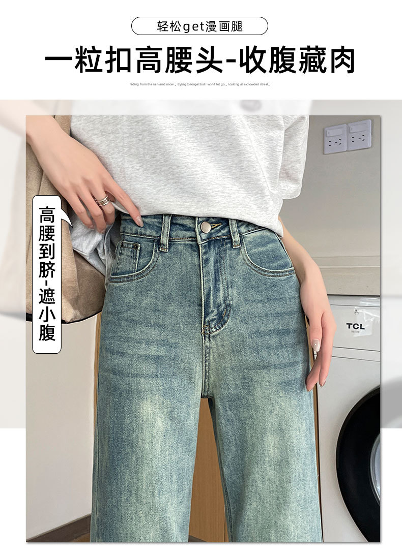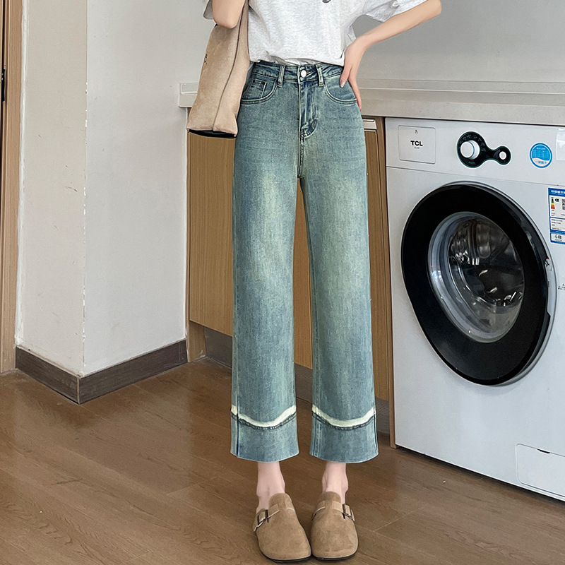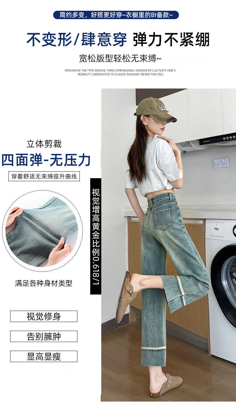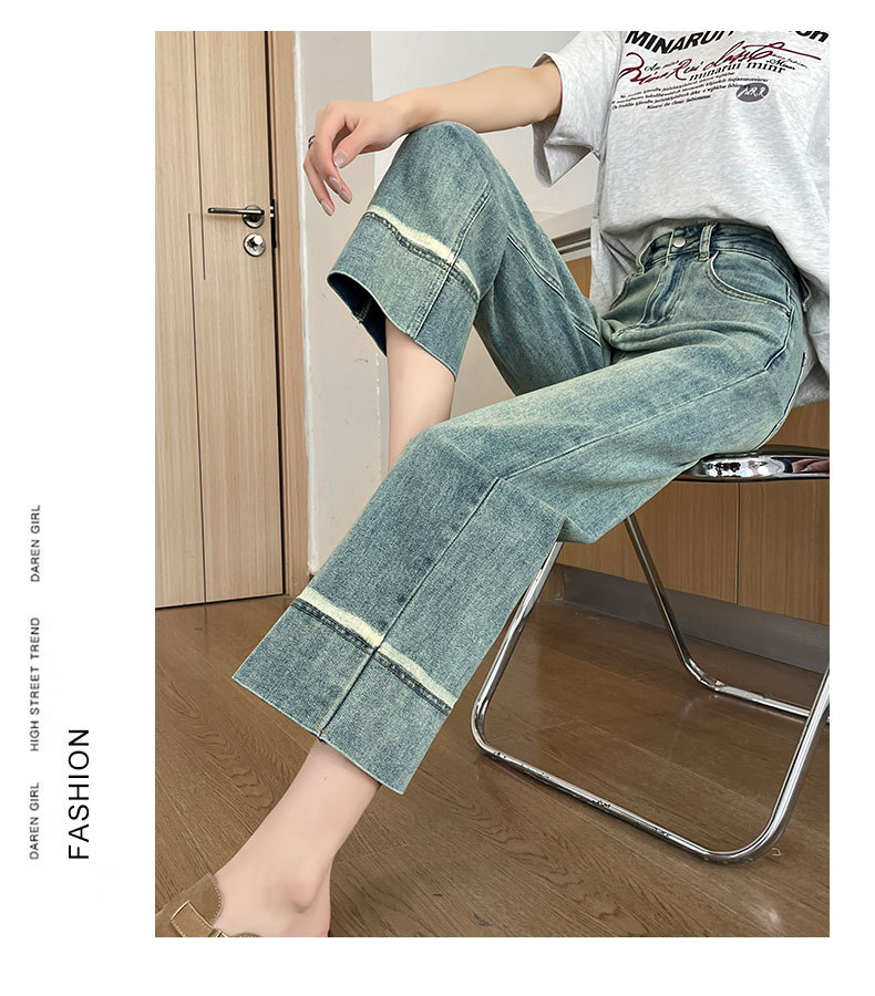 몸집이 작은 여성용 9부 청바지, 루즈한 와이드 레그, 살을 커버하고 날씬해 보이는, 복고풍, 향수를 불러일으키는 여성용 데님 팬츠, 하이웨이스트스토어 가기