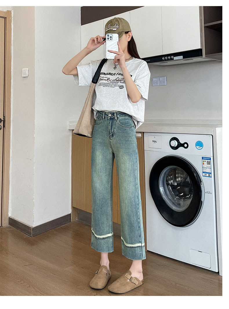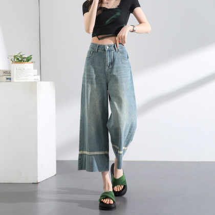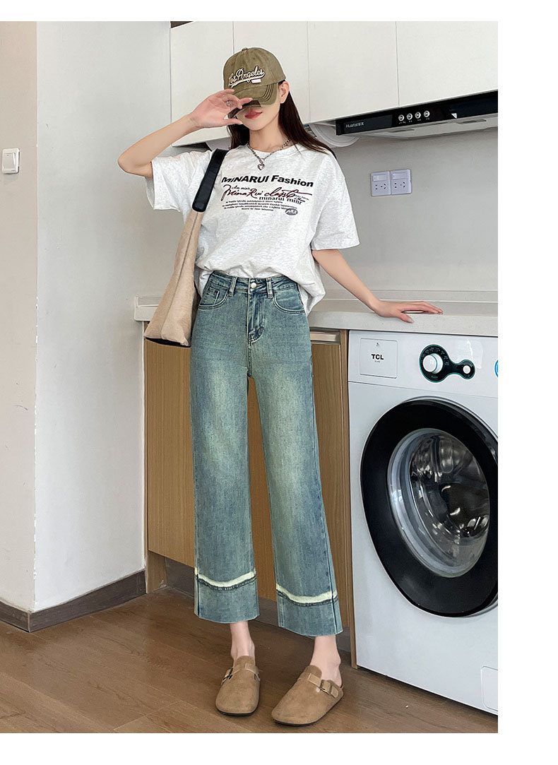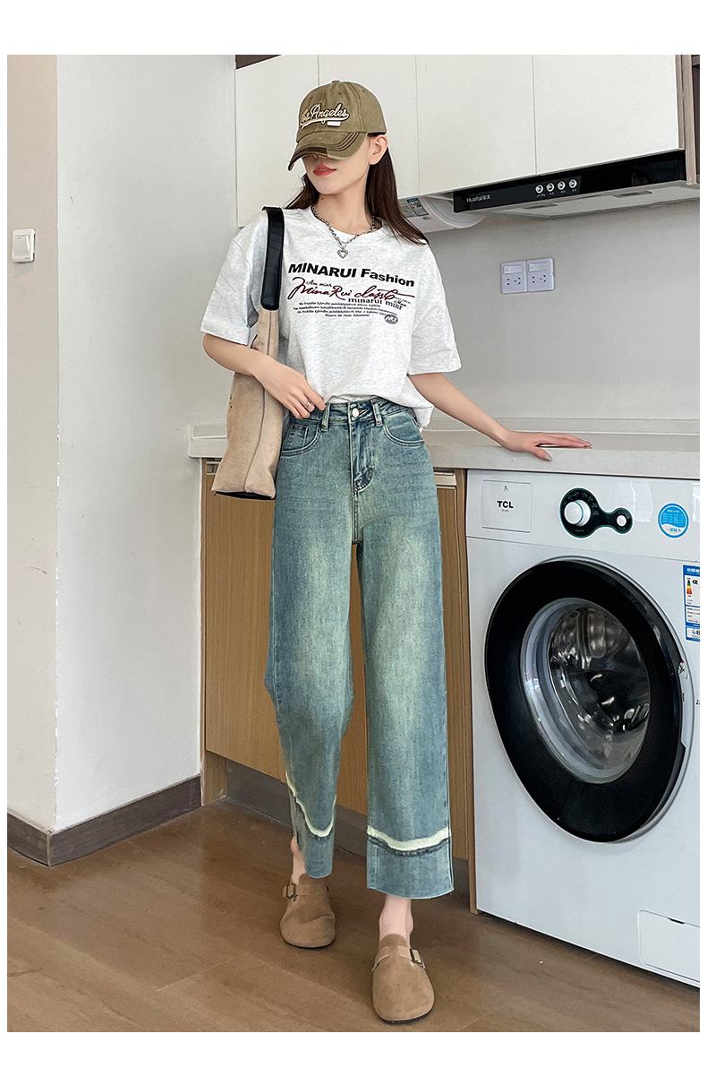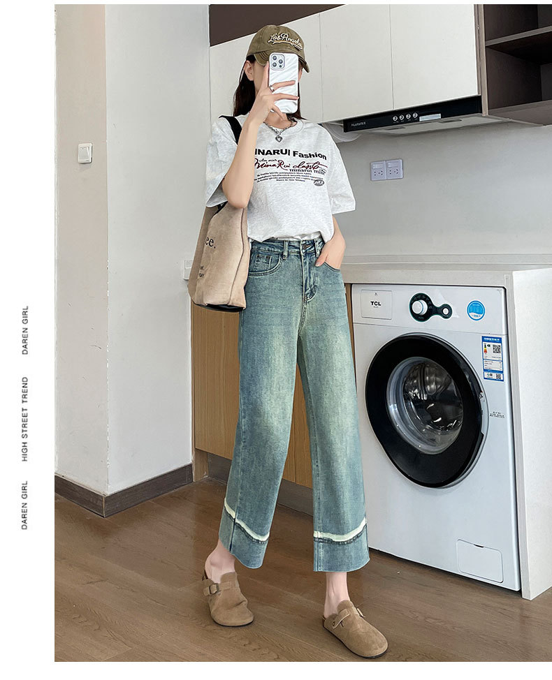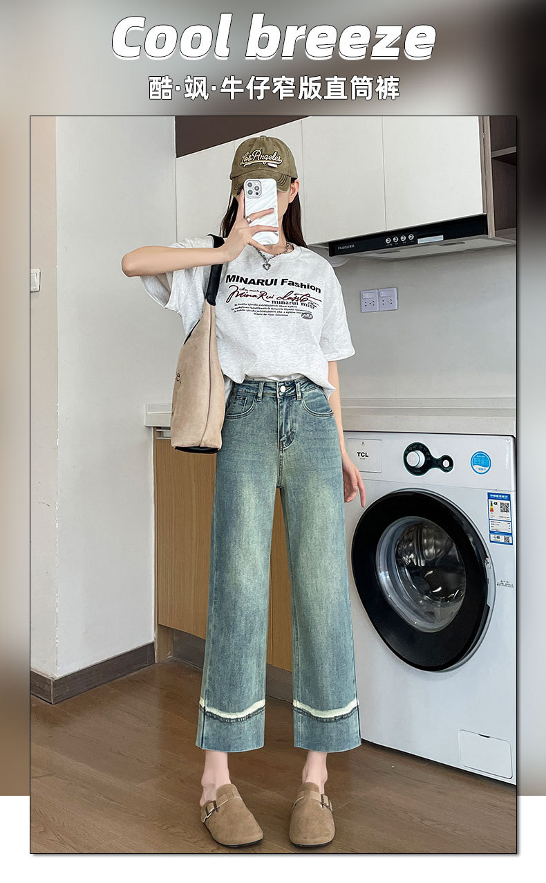 몸집이 작은 여성용 9부 청바지, 루즈한 와이드 레그, 살을 커버하고 날씬해 보이는, 복고풍, 향수를 불러일으키는 여성용 데님 팬츠, 하이웨이스트스토어 가기