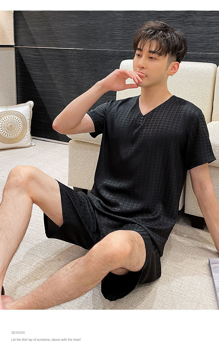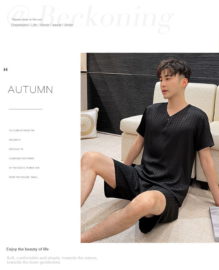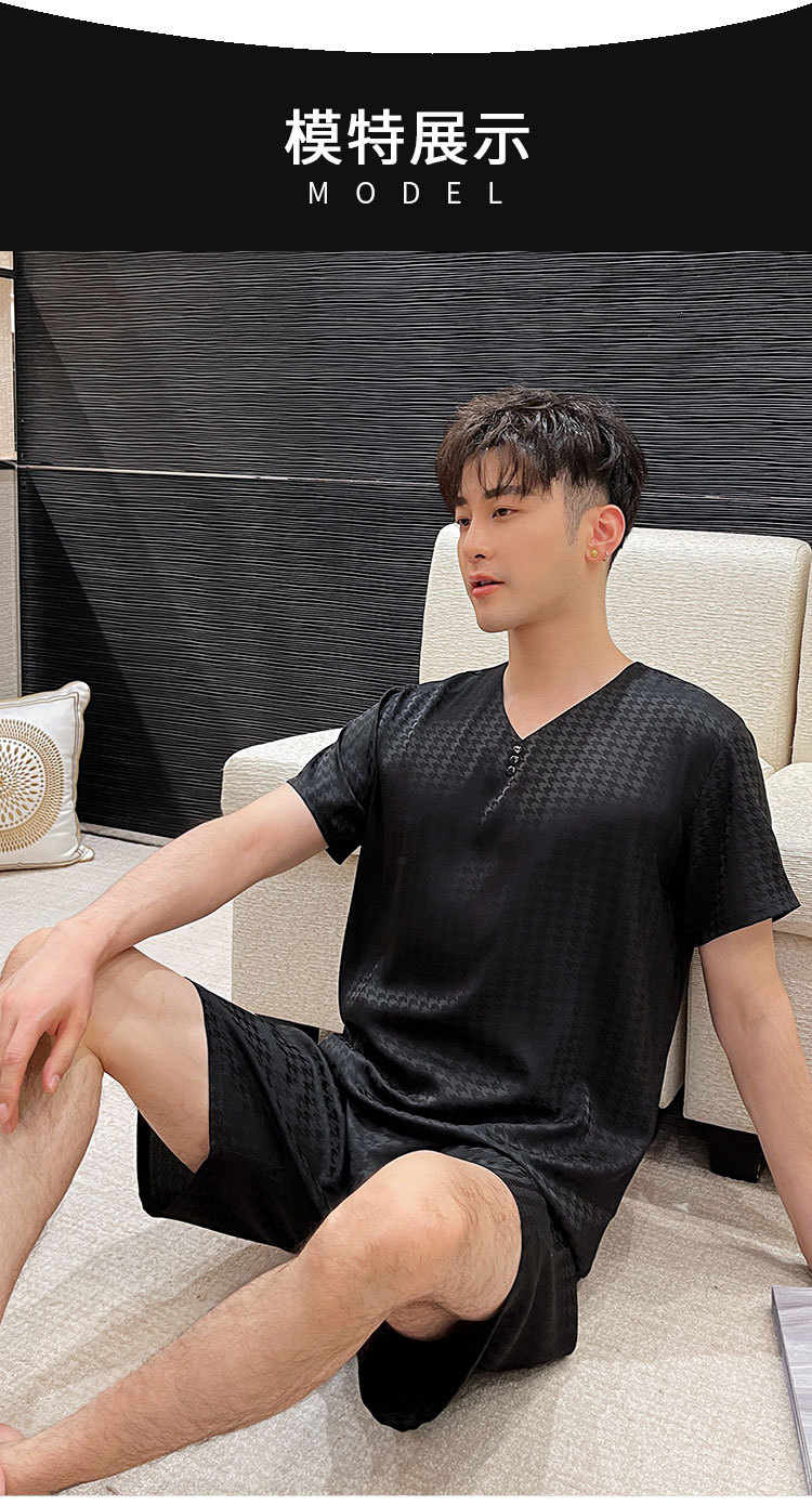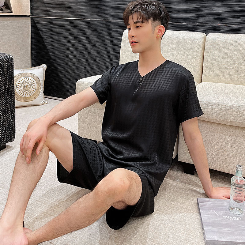 도매 남성 잠옷, 가정복, 봄, 가을, 여름, 반팔, 대형, 실크, 얼음 실크, 얇은 풀오버, 청소년 고급스토어 가기
