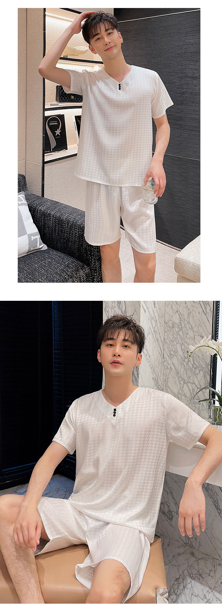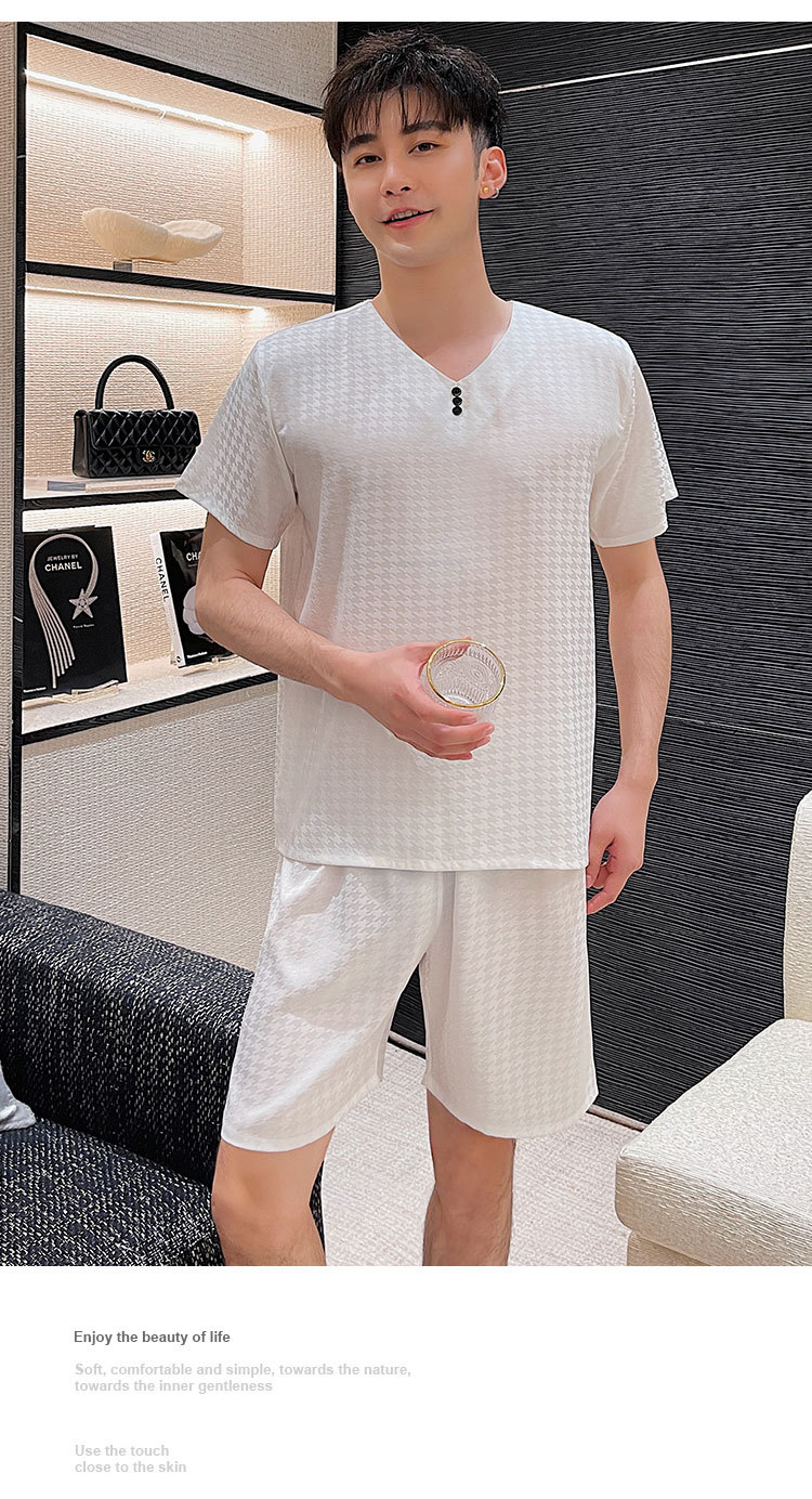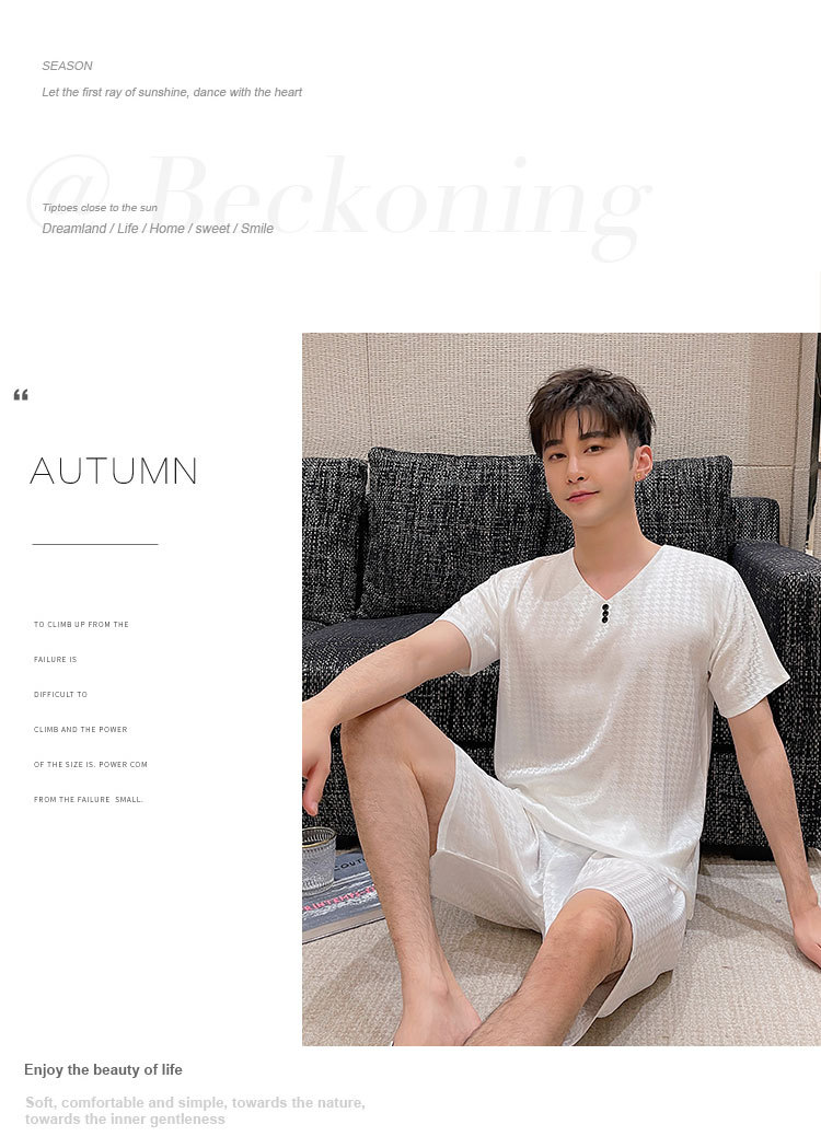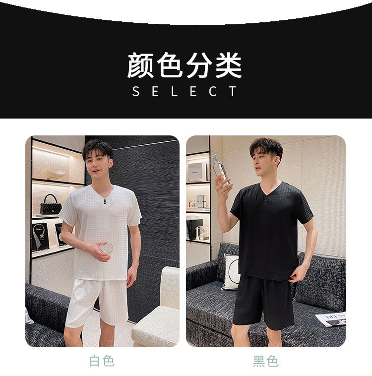 도매 남성 잠옷, 가정복, 봄, 가을, 여름, 반팔, 대형, 실크, 얼음 실크, 얇은 풀오버, 청소년 고급스토어 가기