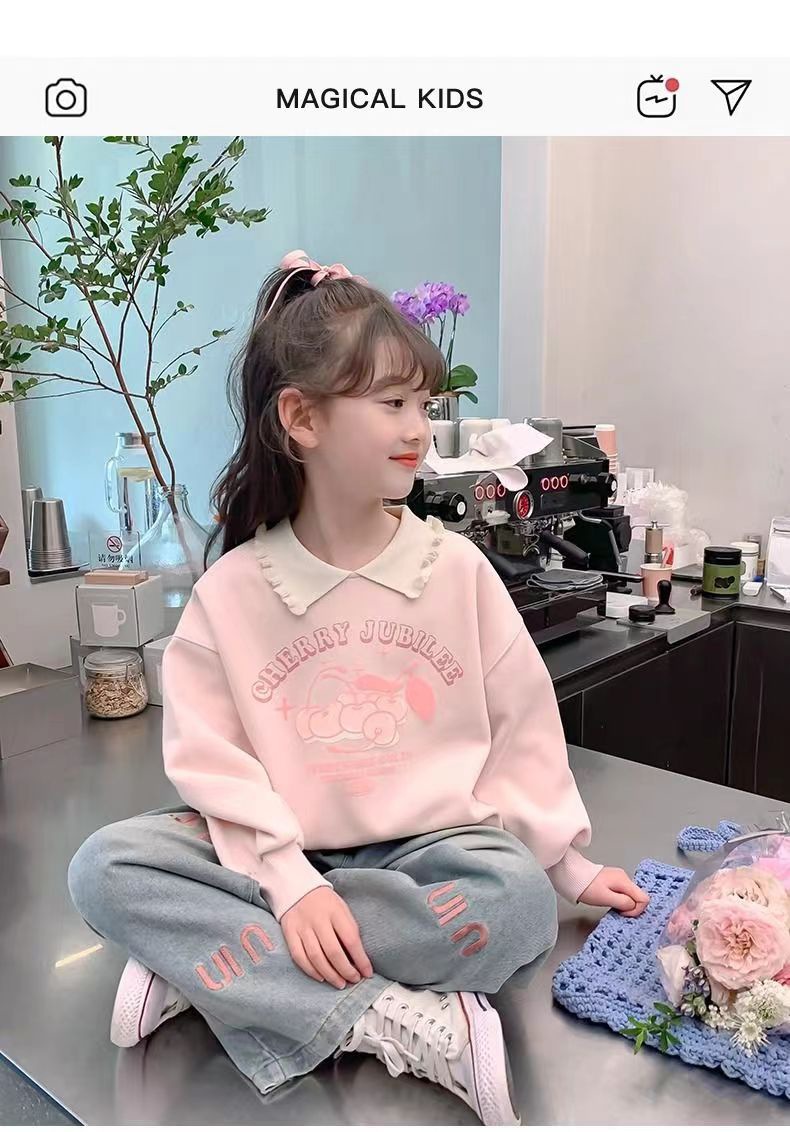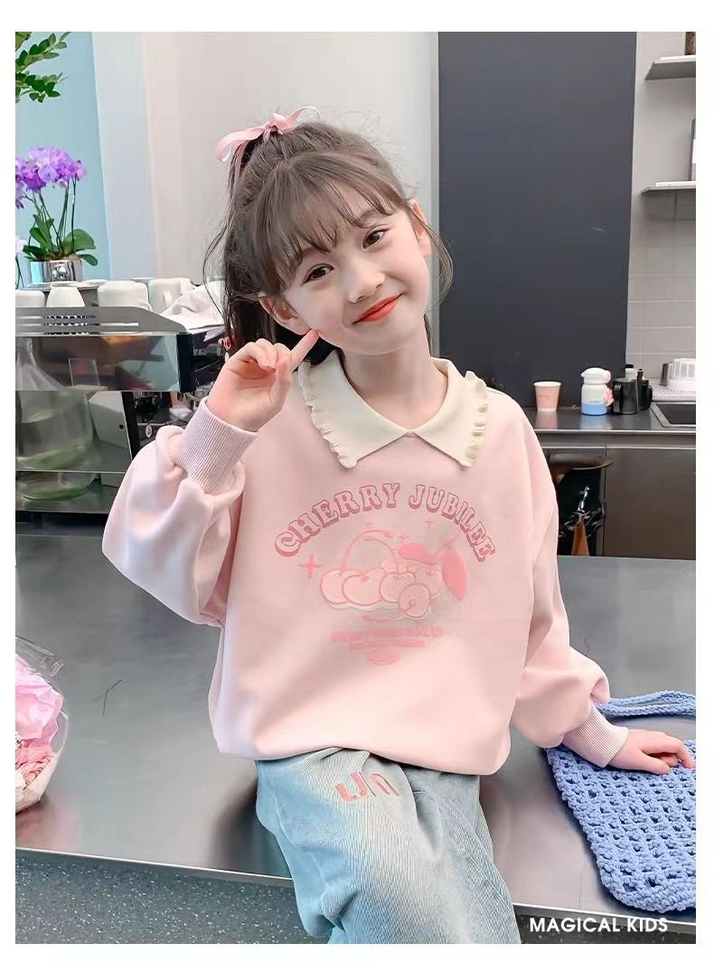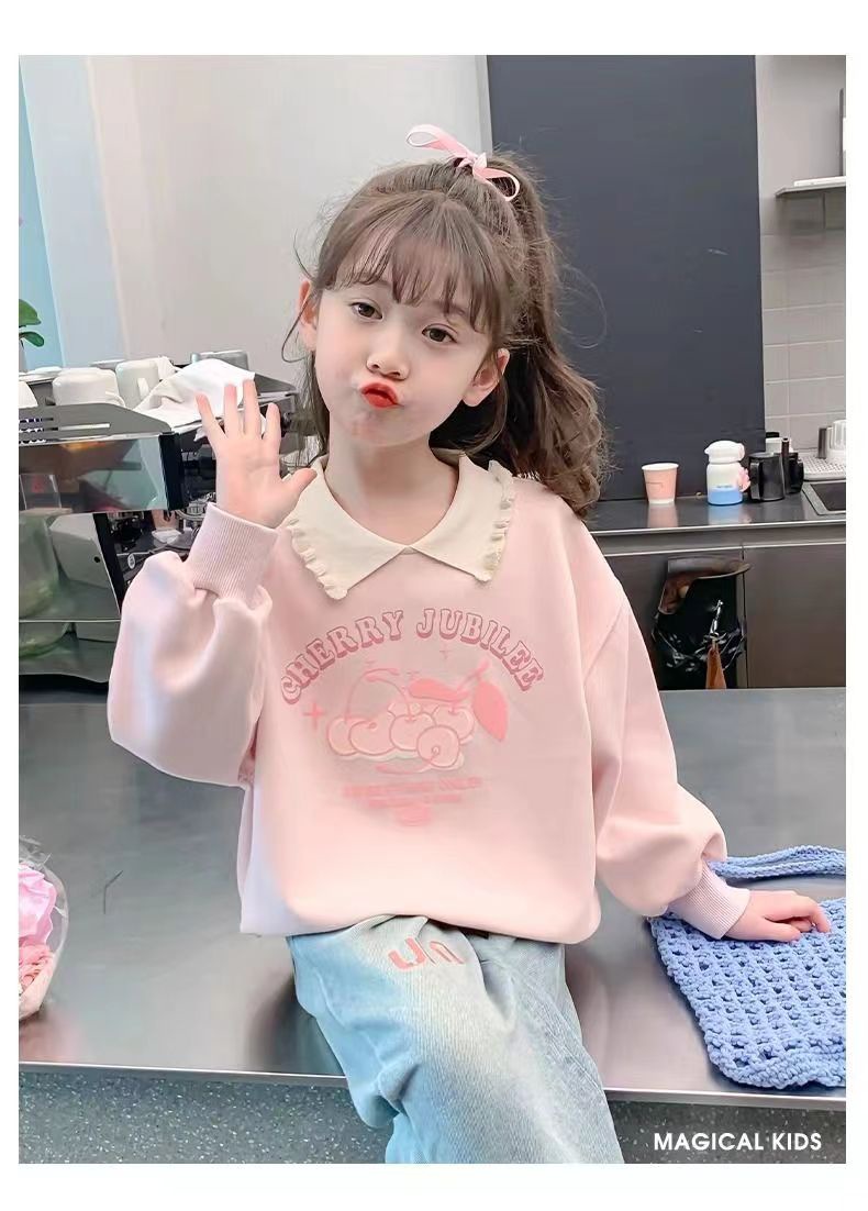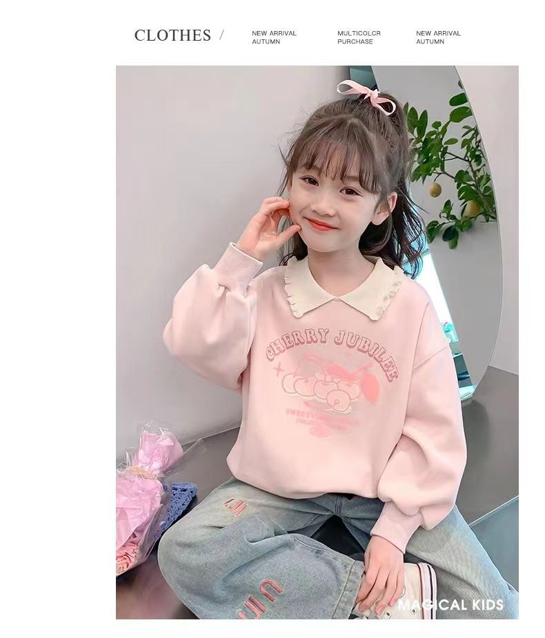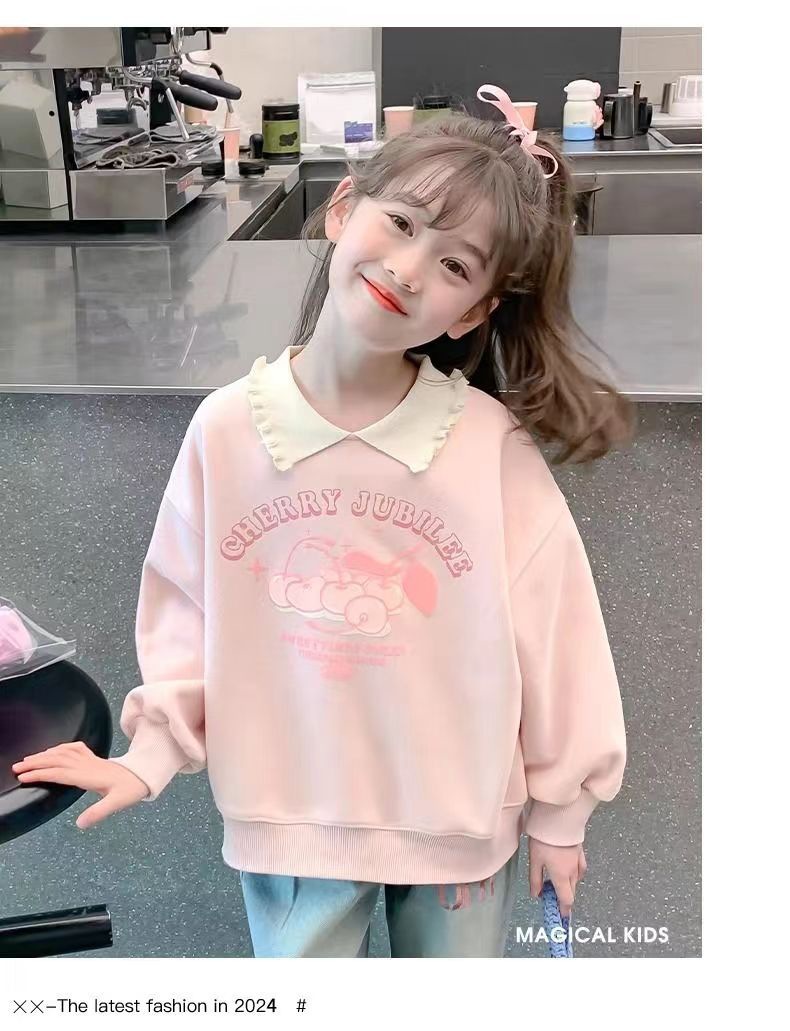 소녀의 가을 땀 2024 새로운 스타일 아동복 소녀의 한국 스타일 옷 어린이 폴로 칼라 봄과 가을 탑스토어 가기