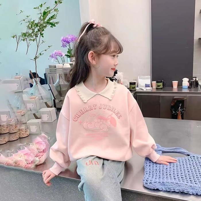 소녀의 가을 땀 2024 새로운 스타일 아동복 소녀의 한국 스타일 옷 어린이 폴로 칼라 봄과 가을 탑