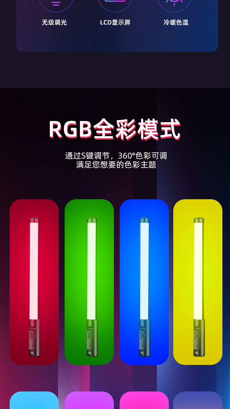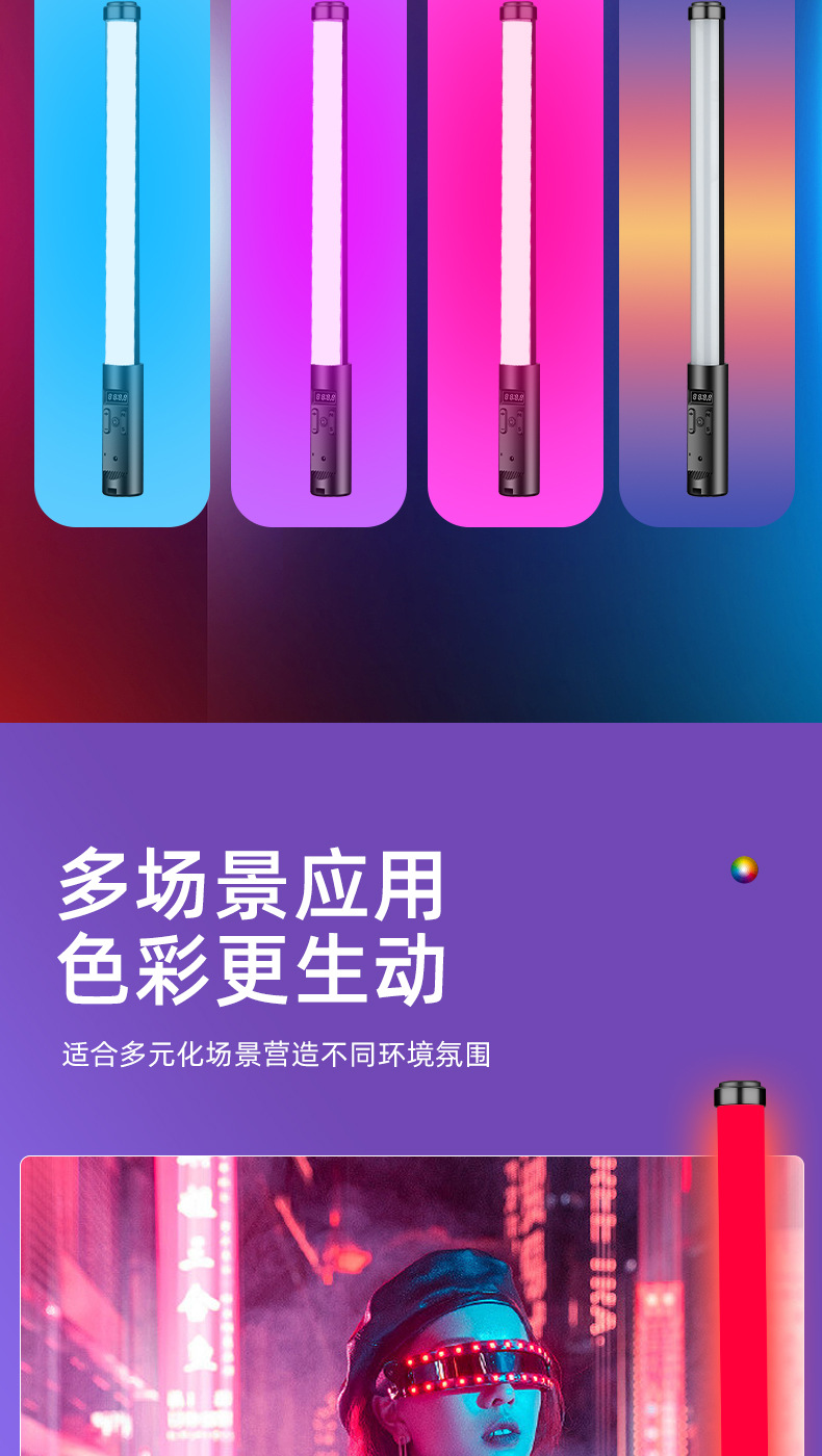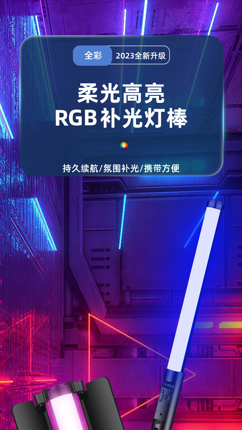 분위기 빛 휴대용 RGB 사진 라이트 스틱 다채로운 휴대용 다채로운 라이브 룸 라이트 스틱 라이트