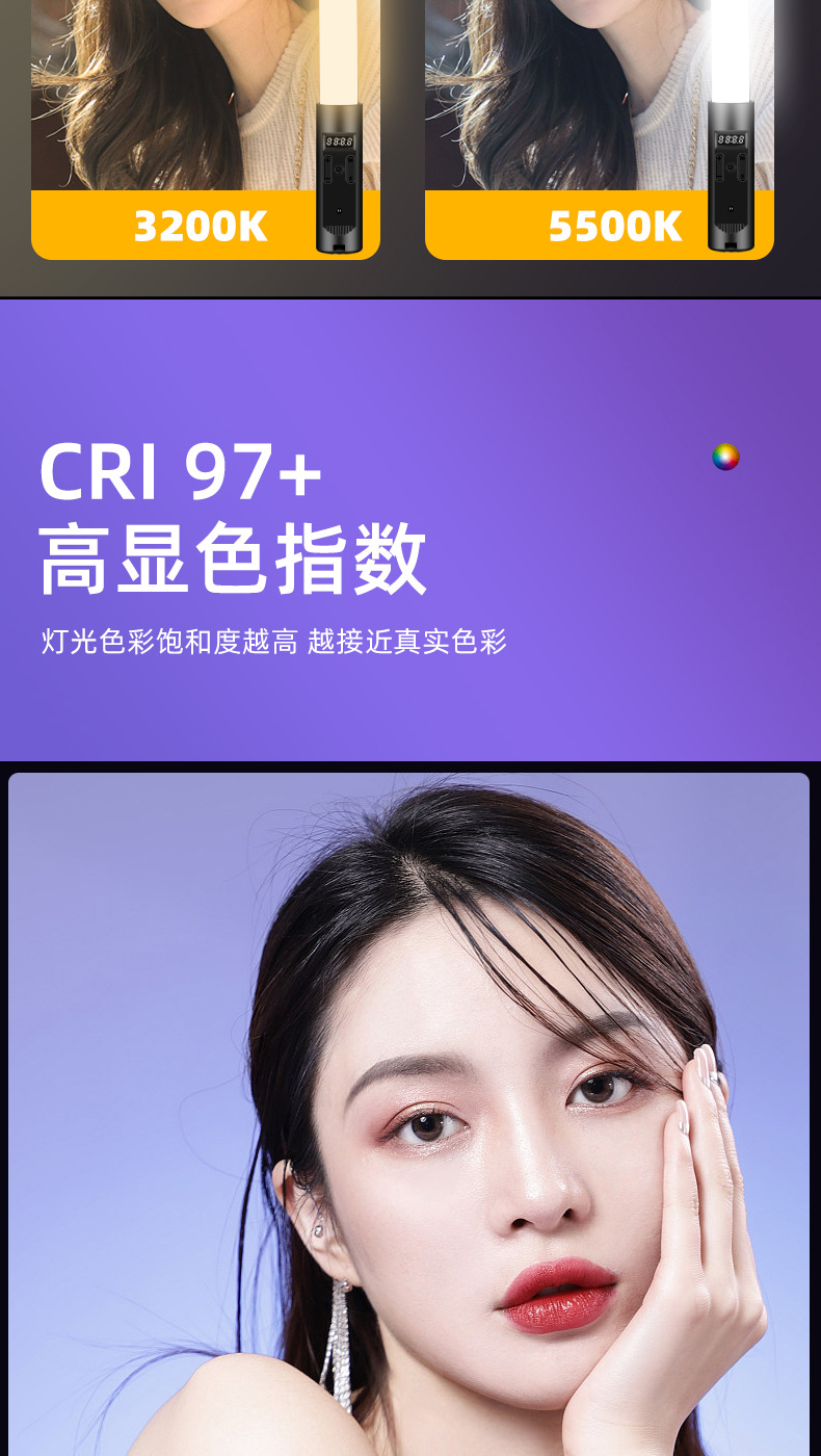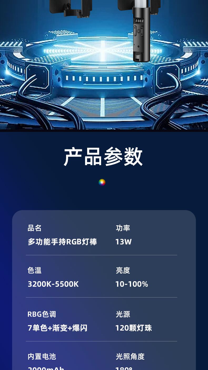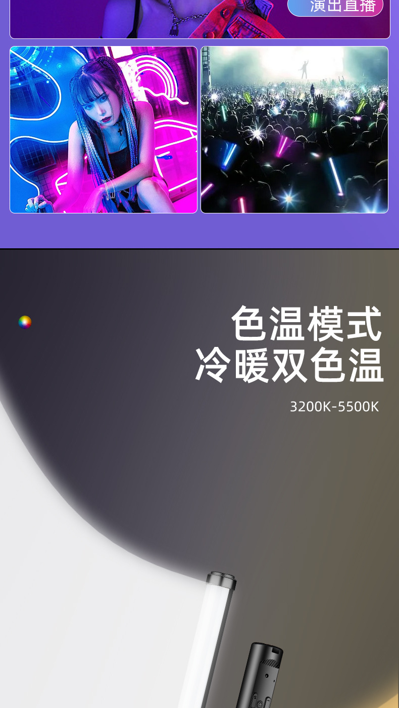 분위기 빛 휴대용 RGB 사진 라이트 스틱 다채로운 휴대용 다채로운 라이브 룸 라이트 스틱 라이트