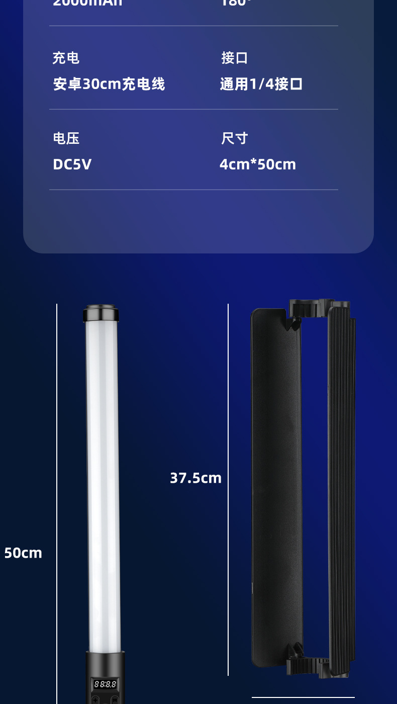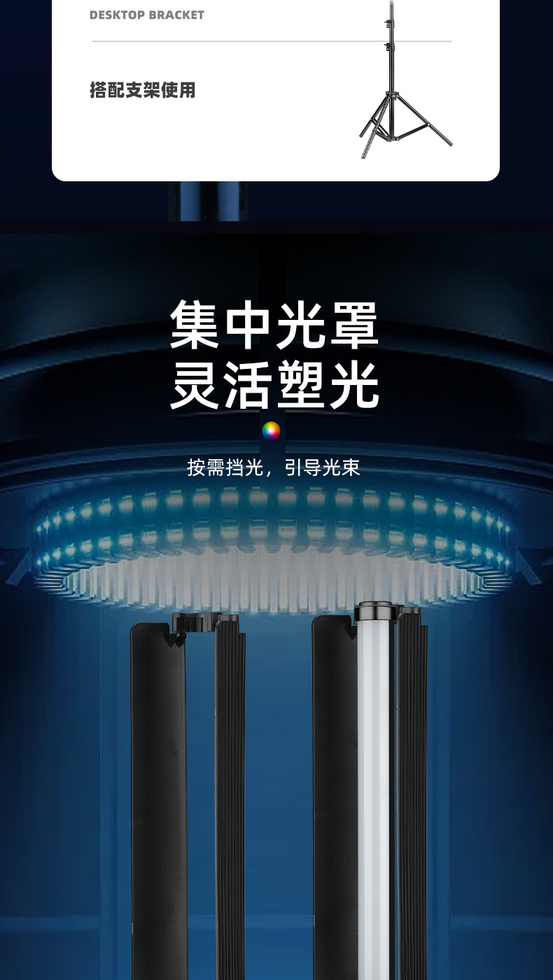 • 배플 + 브래킷 2.1m개 + 짐벌이 포함된 RGB 필 라이트 스틱