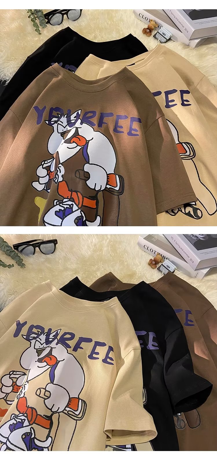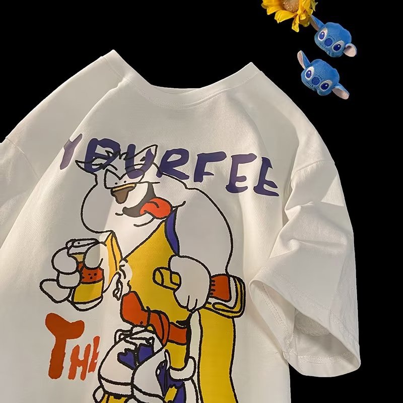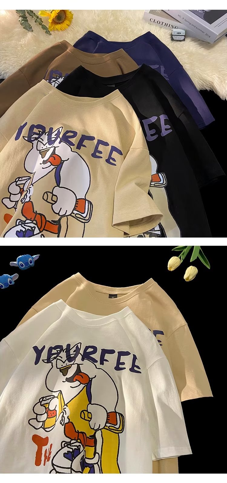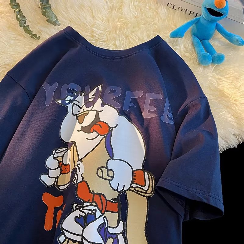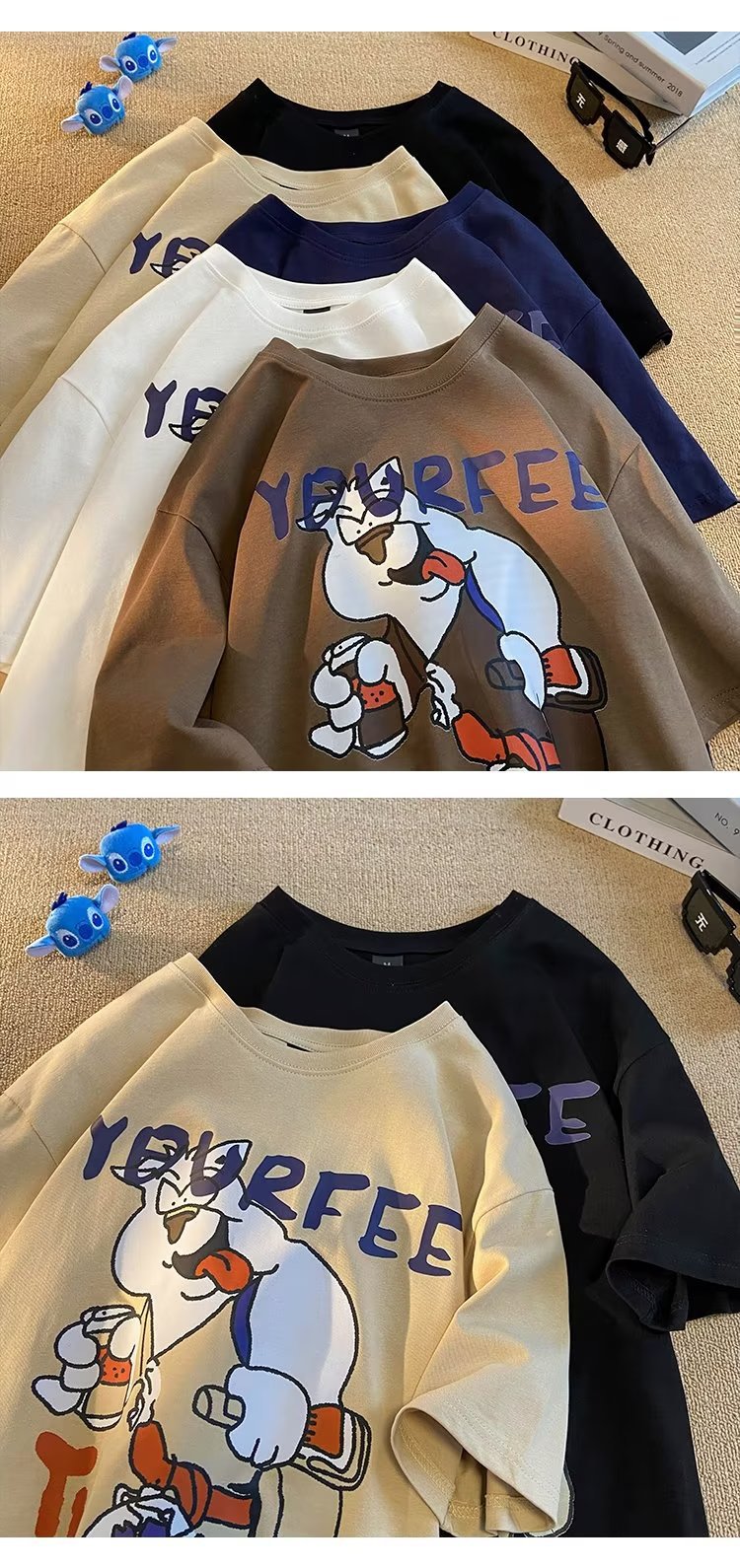 반소매 패션 트렌디 한 브랜드 짧은 소매 남성 티셔츠 만화 애니메이션 청소년 인기 라운드 넥 여름 프린트 탑