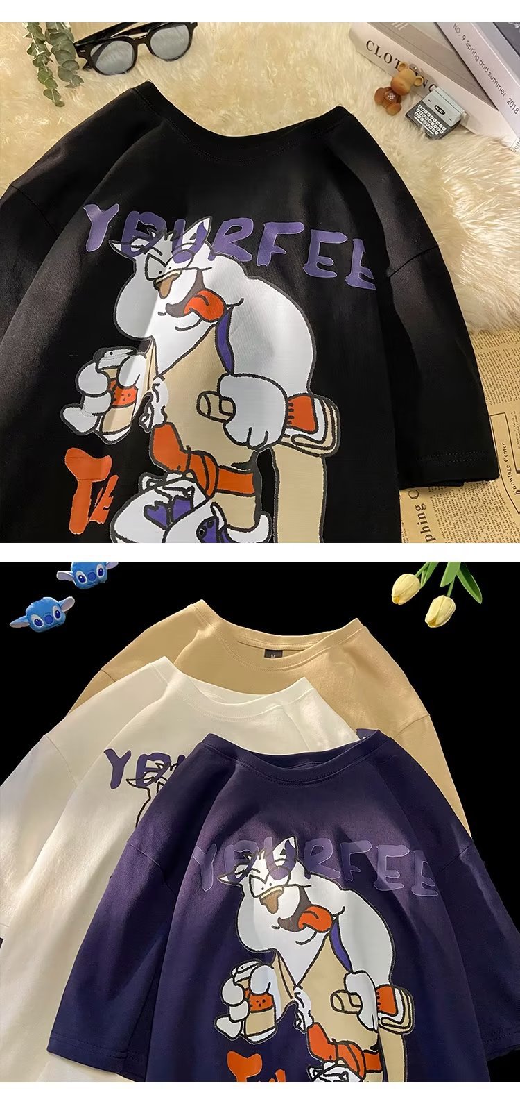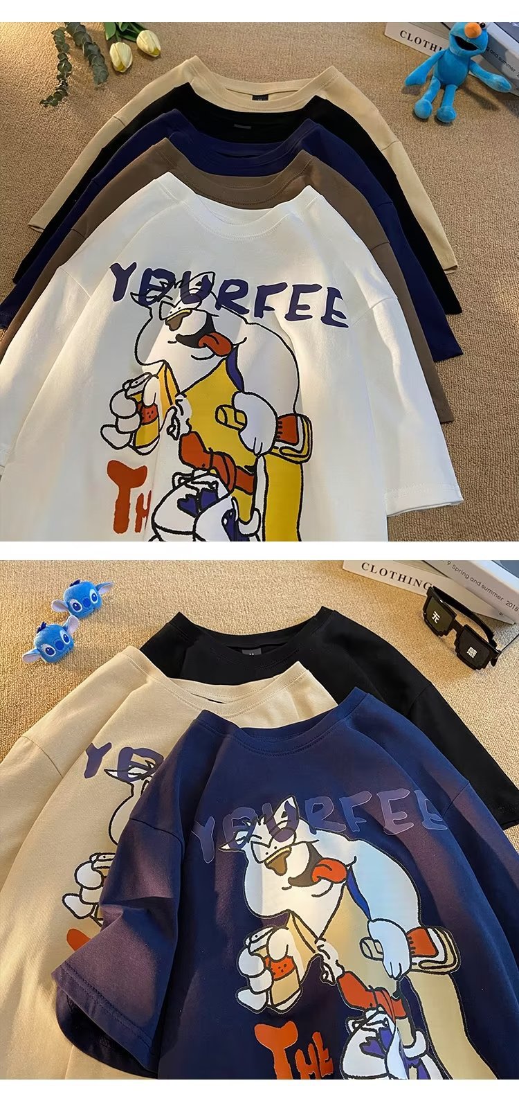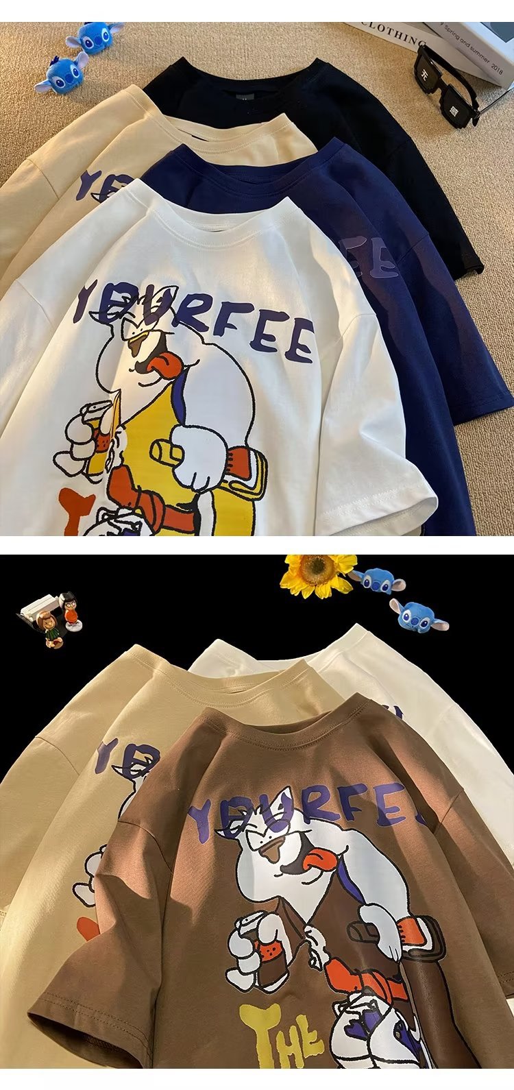 반소매 패션 트렌디 한 브랜드 짧은 소매 남성 티셔츠 만화 애니메이션 청소년 인기 라운드 넥 여름 프린트 탑스토어 가기