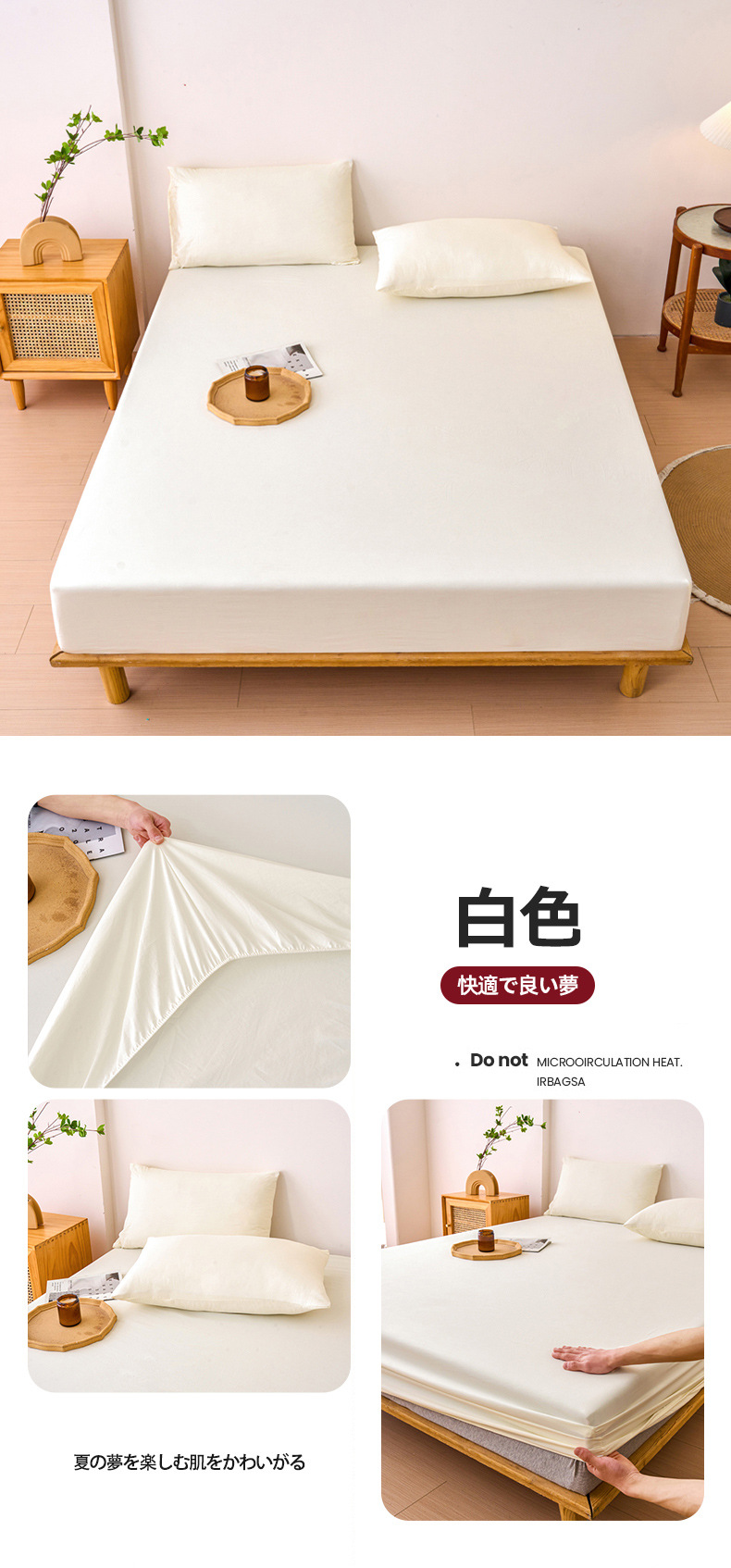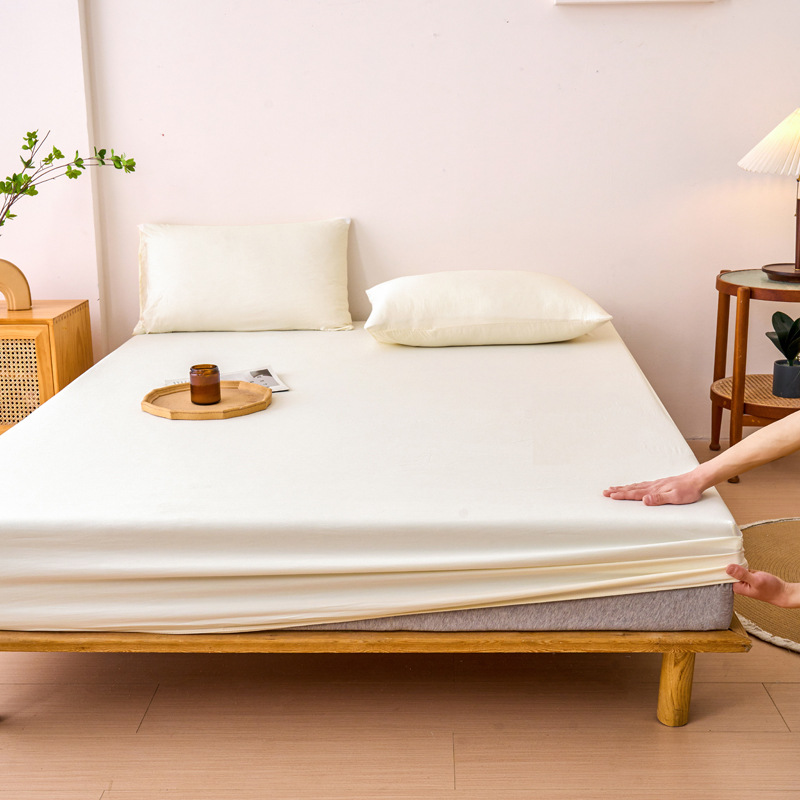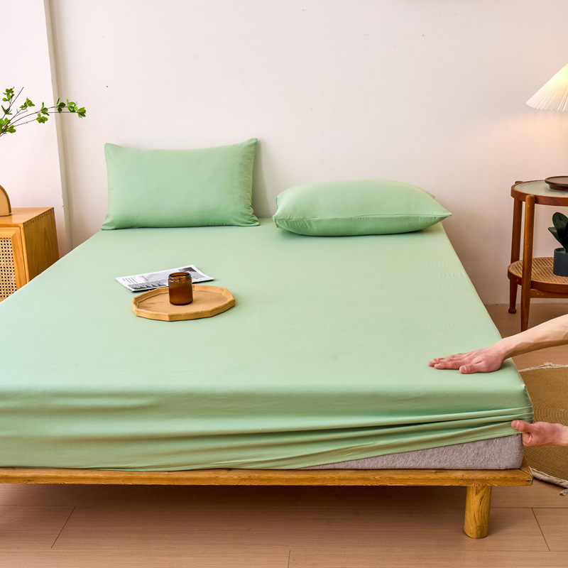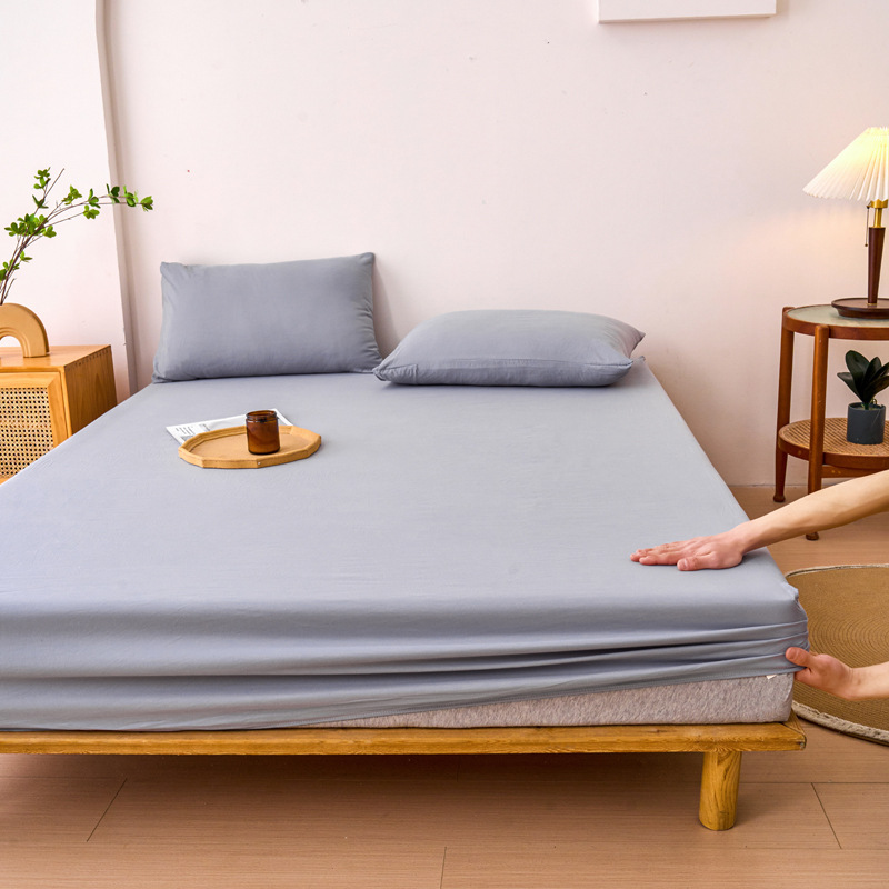 2024 새로운 오리지널 코튼 침대 커버 클래스 베개 케이스 솔리드 컬러 3 피스 세트 완전히 밀폐 된 매트리스 커버 보호 커버 미끄럼 방지 침대 커버 3스토어 가기