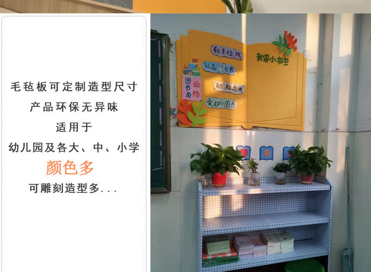 펠트 보드 벽 스티커 유치원 교실 레이아웃 코르크 보드 학교 환경 친화적 인 장식 책 모양의 사진 작업 디스플레이 보드
