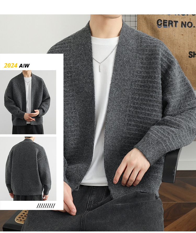 2024 새로운 가을, 겨울 남성 한국 스타일 맞춤형 올드 머니 스타일 스웨터 트렌디 브랜드 v 넥 패션 다목적 숄 가디건