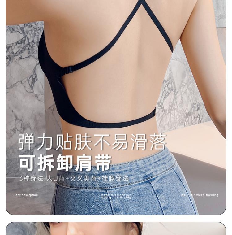 아름다운 등 큰 U 백리스 브라 슬링 프렌치 속옷 여성 누드 느낌 와이어 프리 여름 얇은 심리스 푸시업 브라스토어 가기