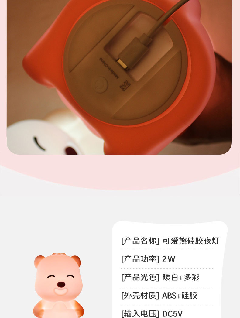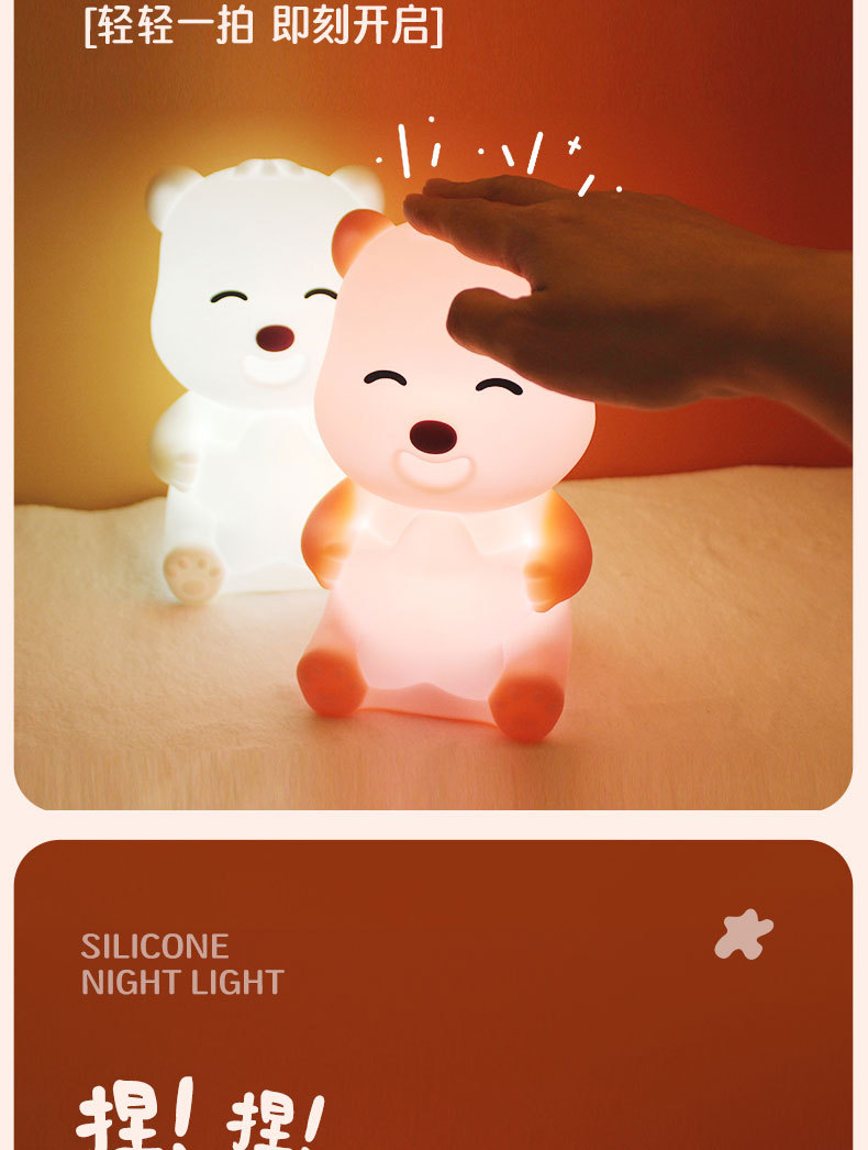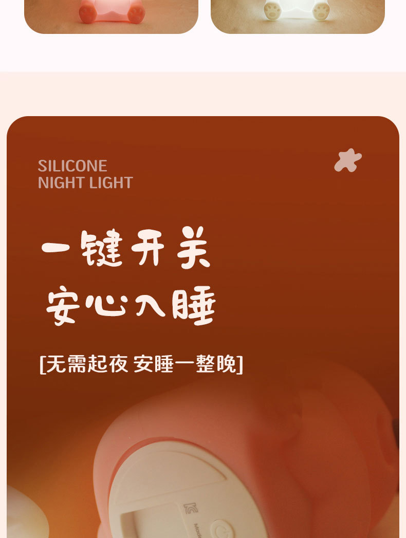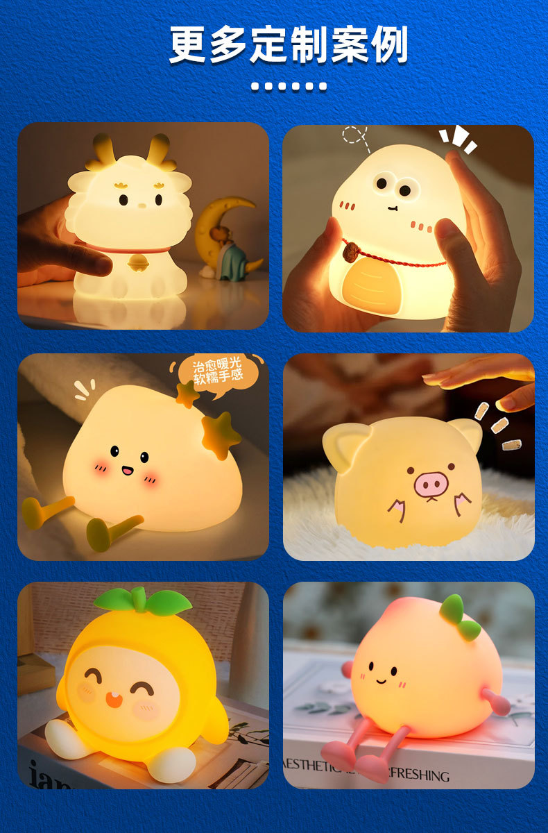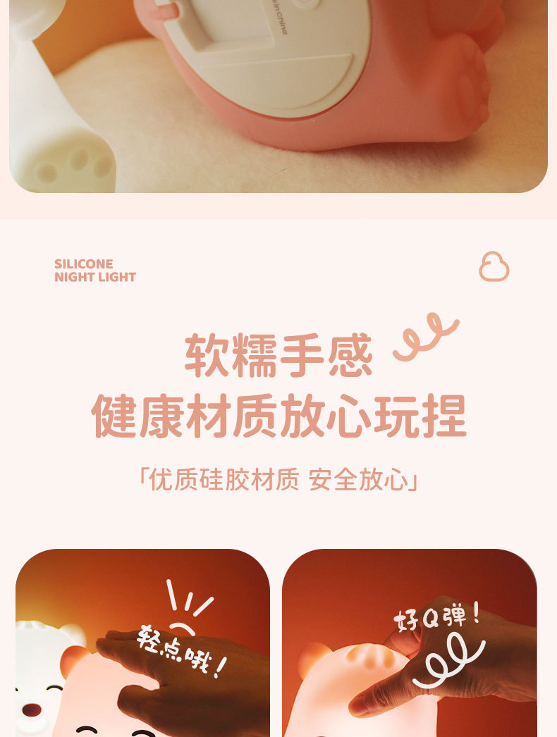 맞춤형 실리콘 램프 플러그인 충전식 침대 옆 타이머 부드러운 조명 센서 수면 야간 조명 생산