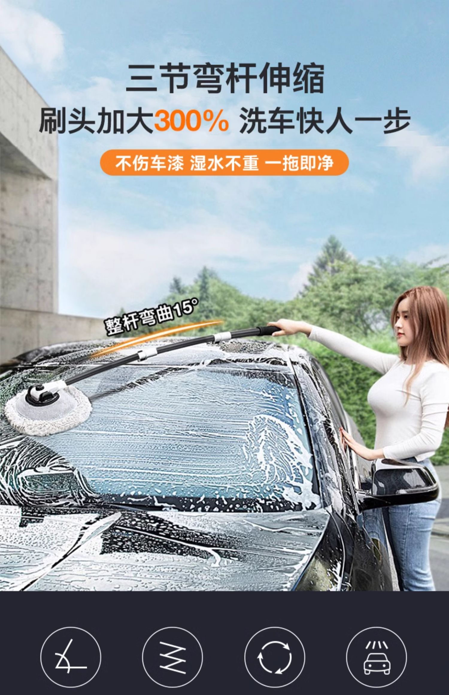 • 수천명이 구매함 [두꺼워진 15 ° 벤트로드] 합금 텔레스코픽 걸레 + 수입원료 세차액 + 세차타올