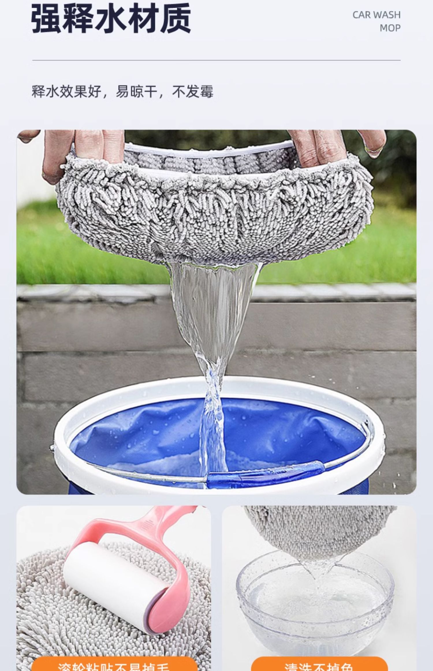 • 【15°굽은봉합금대걸레】+수건+세차액+유분제거제
