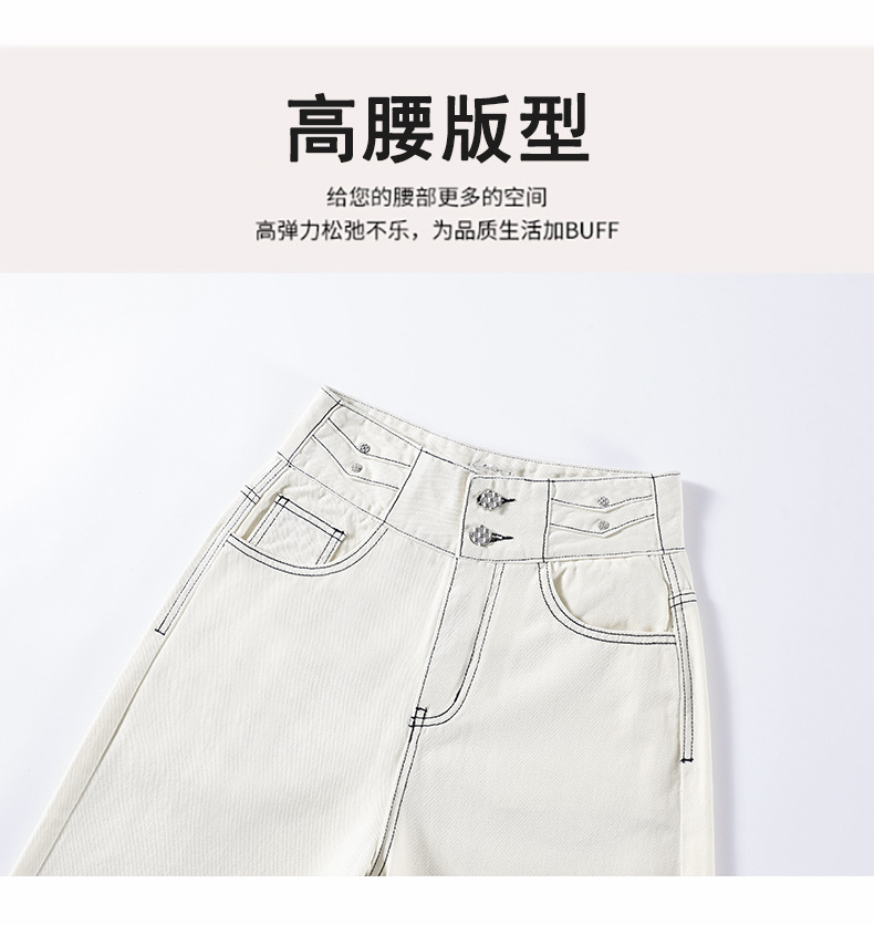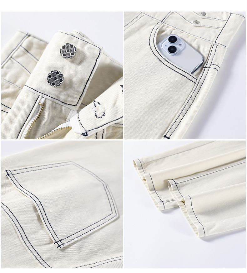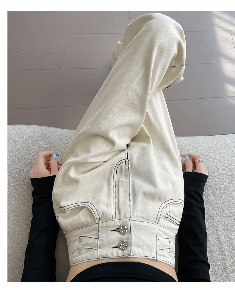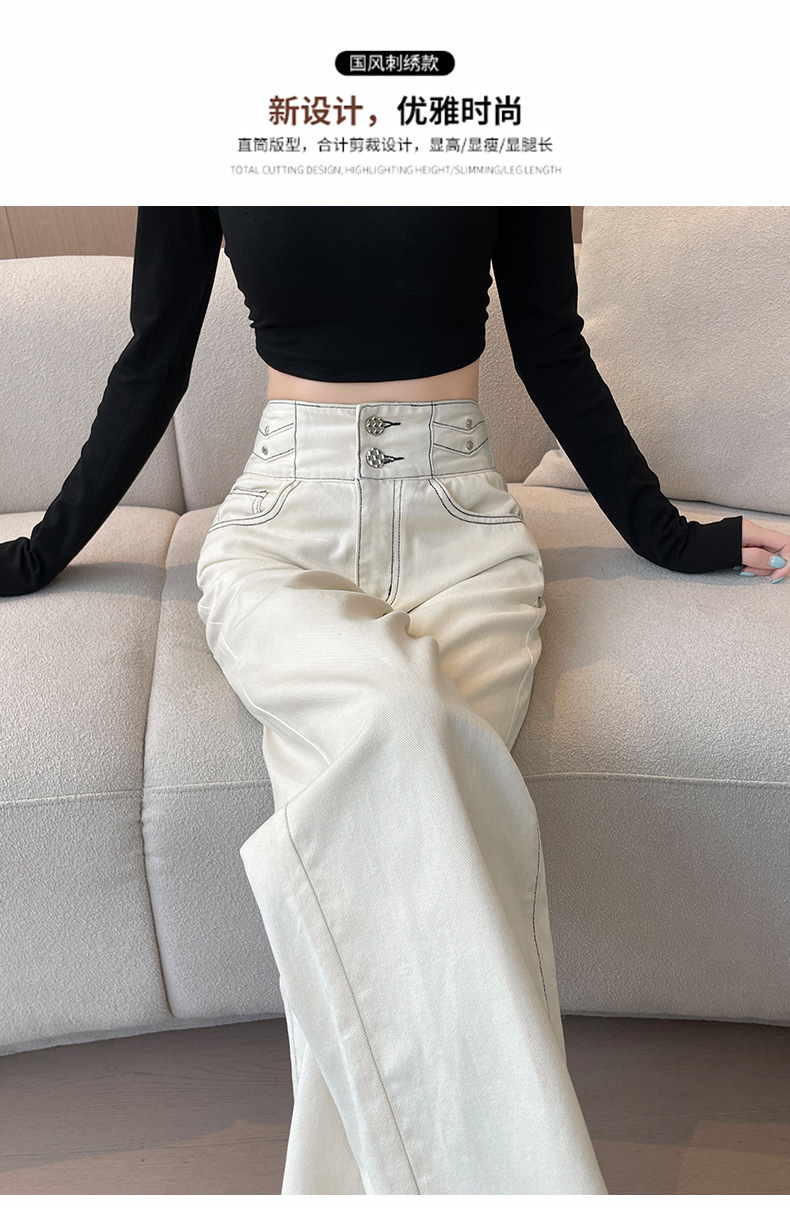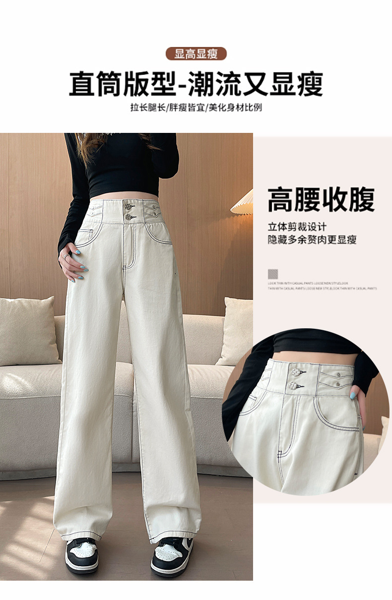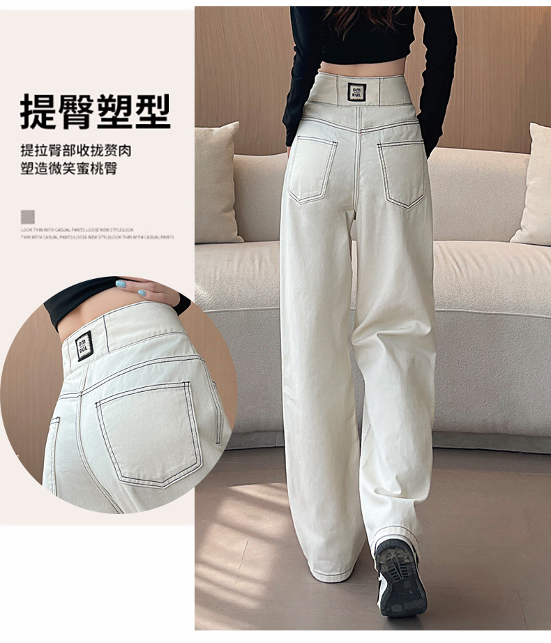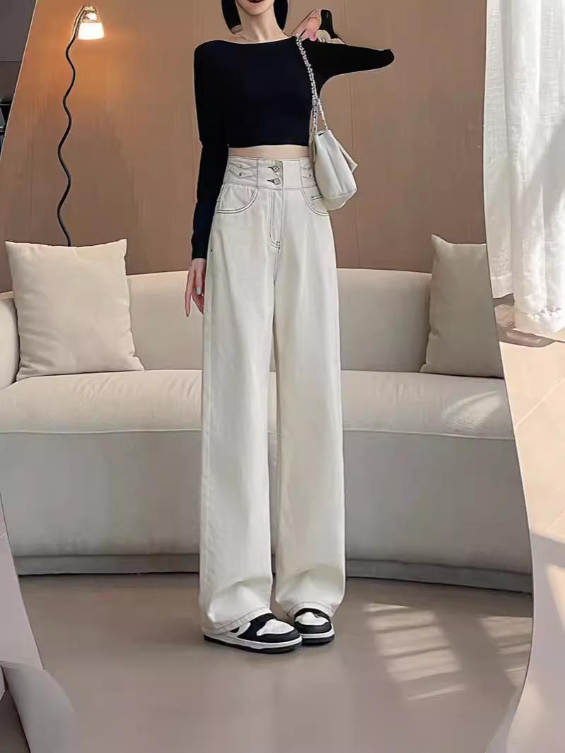 9818 새로운 여성용 다용도 와이드 레그 팬츠 하이 웨이스트 편안한 통기성 스트레이트 레그 팬츠 화이트 캐주얼 청바지스토어 가기