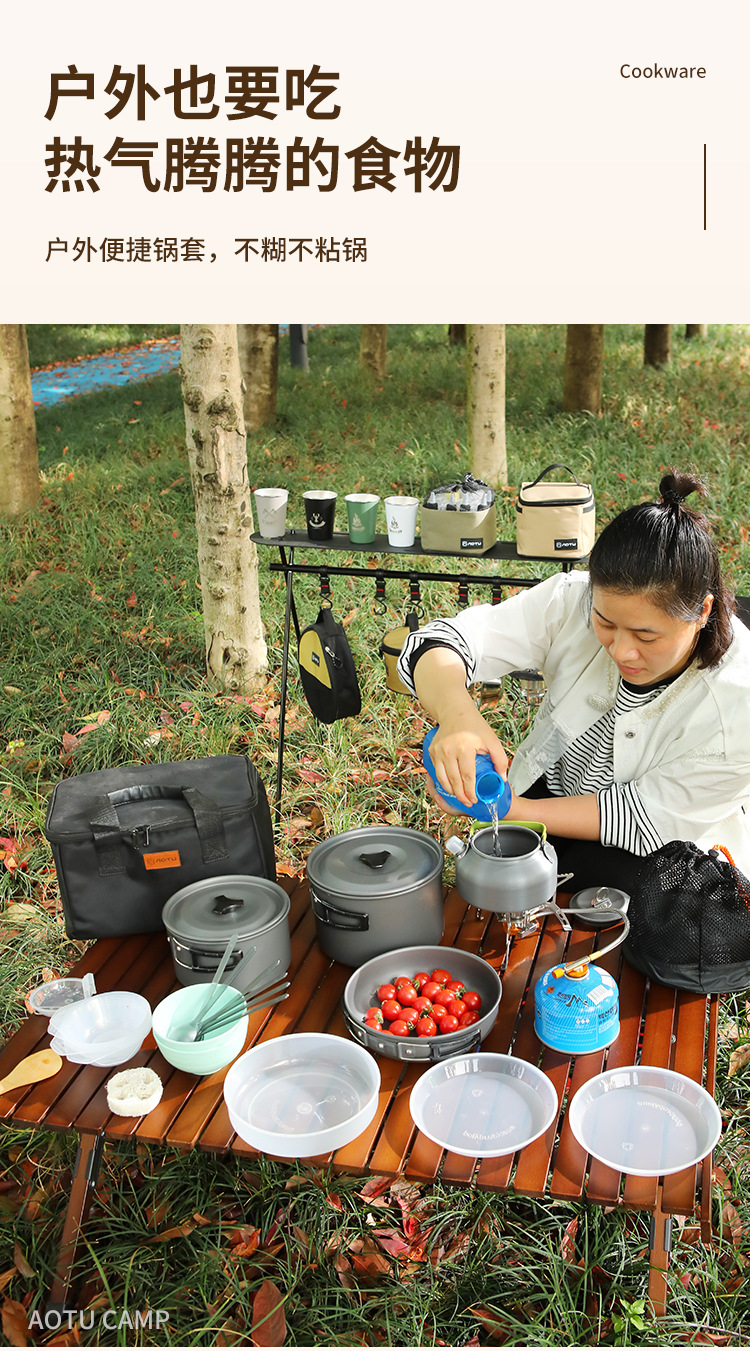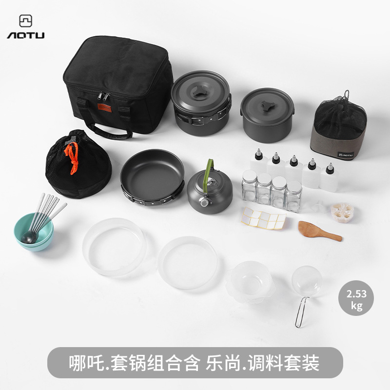 야외용 냄비, 주전자, 조리기구, 캠핑용 휴대용 장비, 야외용품 풀세트, 피크닉용 냄비세트스토어 가기