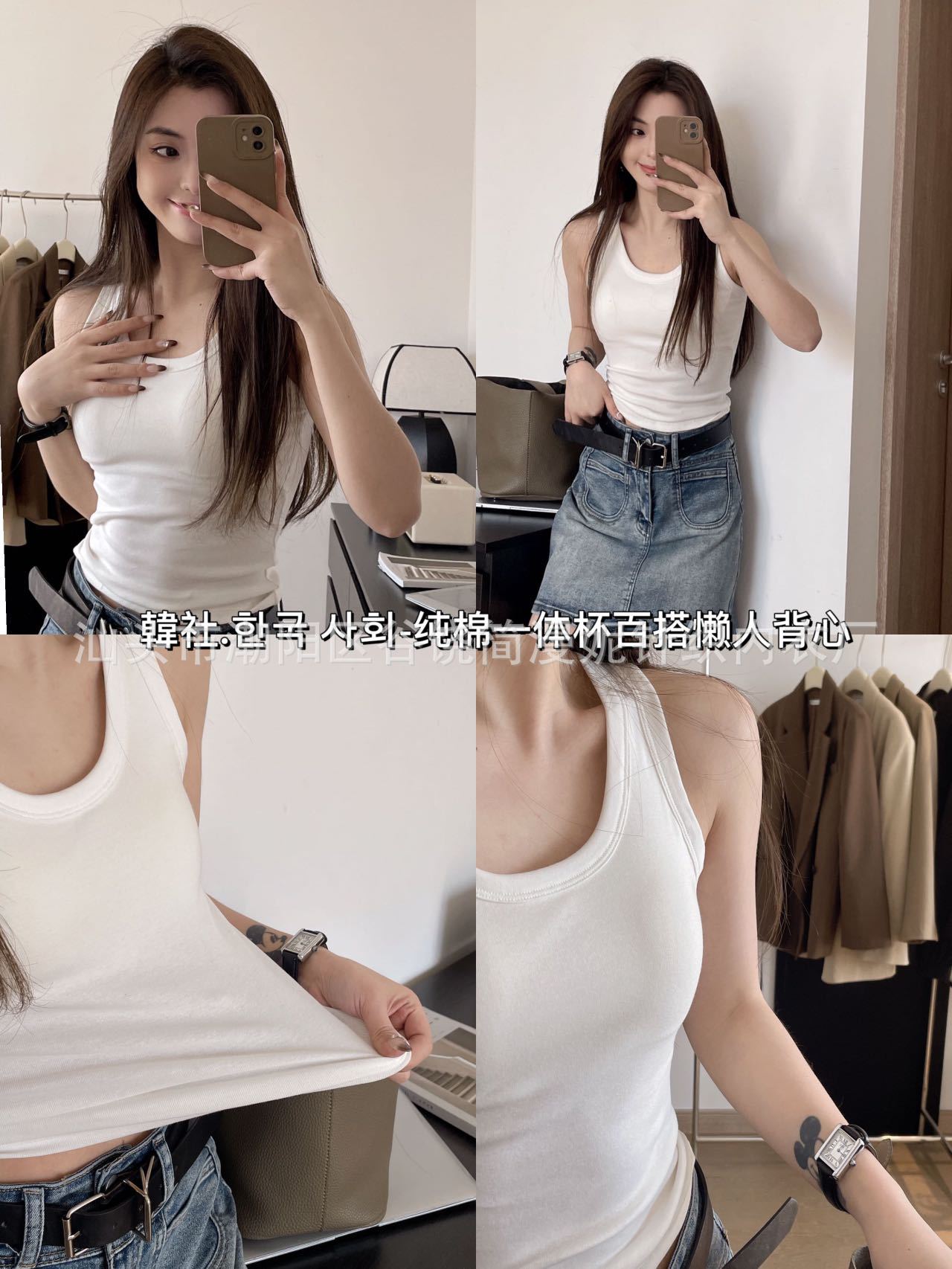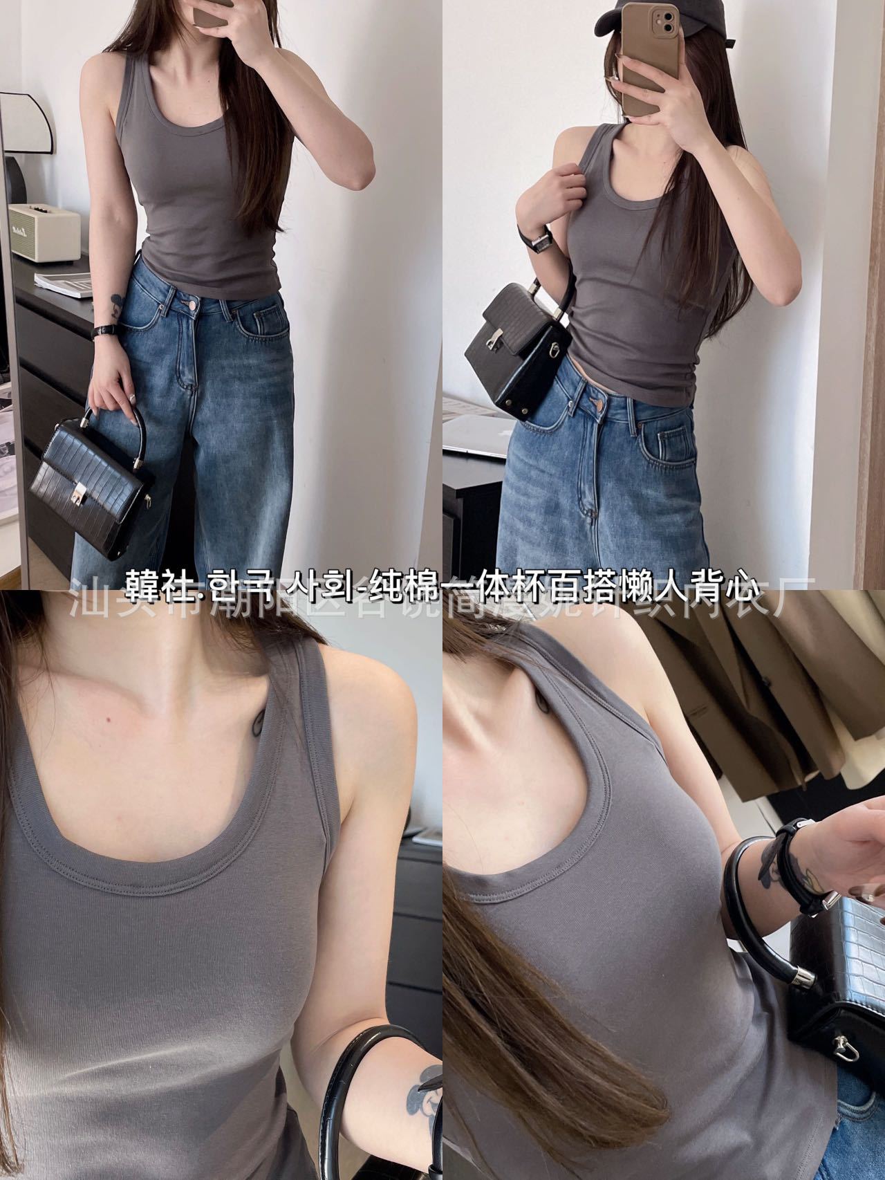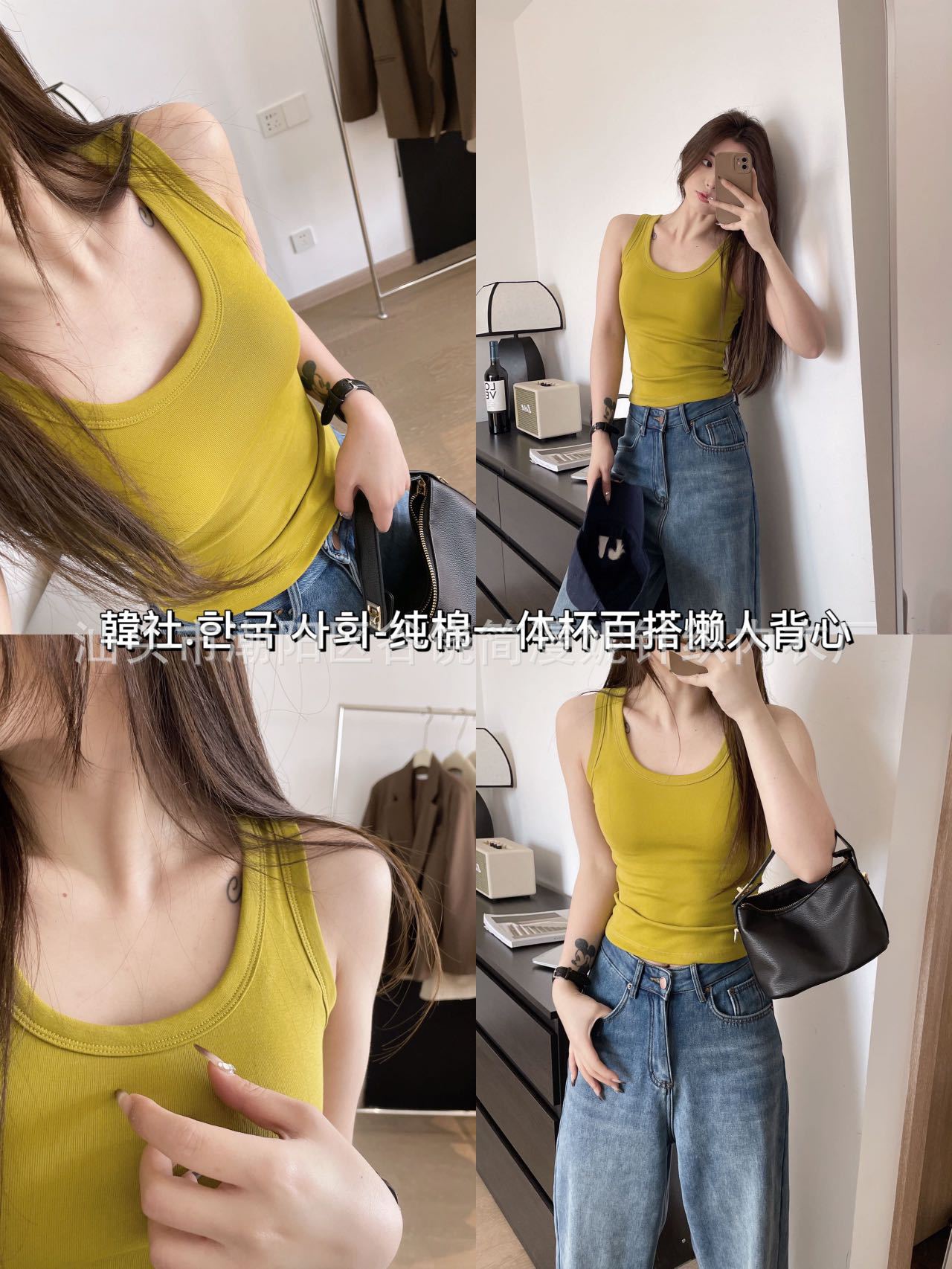 Jian Manixia의 올인원 컵 가슴 패드, 다용도 게으른 순면 조끼, 편안하고 슬림하며 슬림한 여성용 아우터 조끼스토어 가기