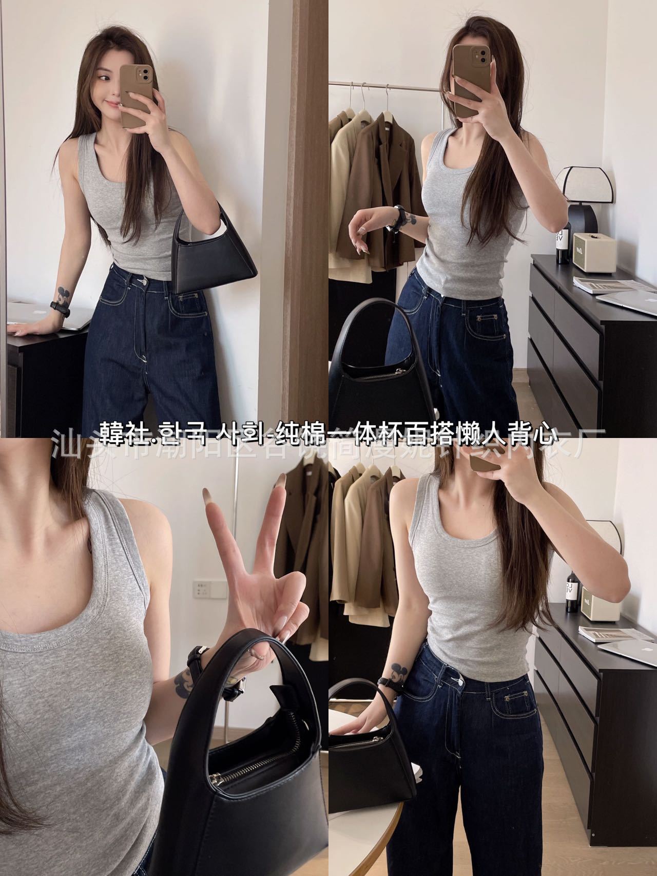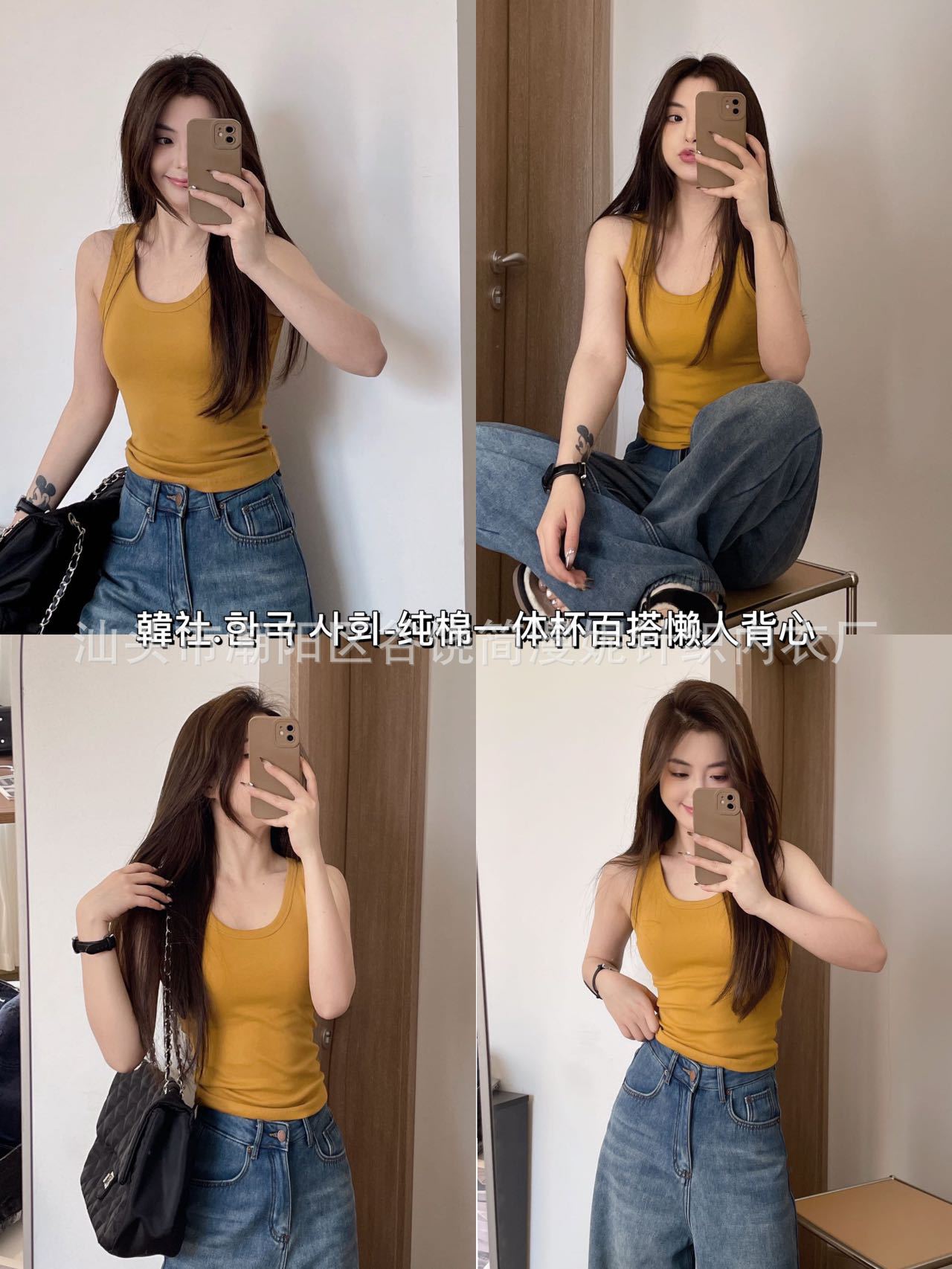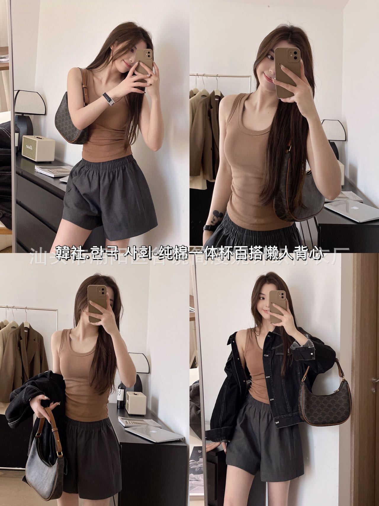 Jian Manixia의 올인원 컵 가슴 패드, 다용도 게으른 순면 조끼, 편안하고 슬림하며 슬림한 여성용 아우터 조끼스토어 가기
