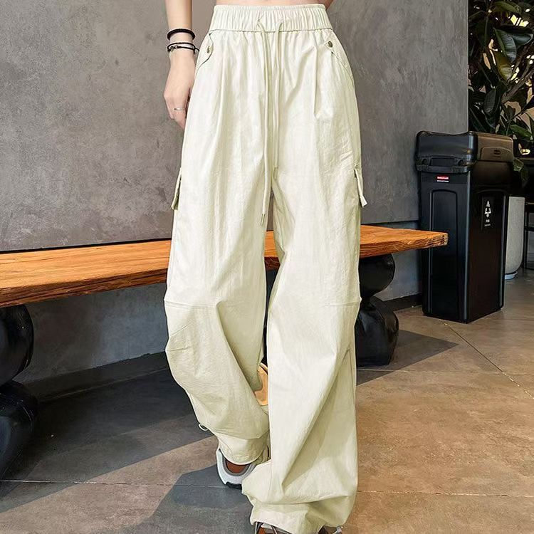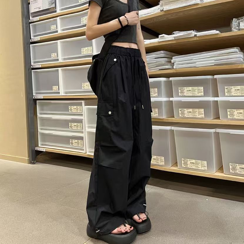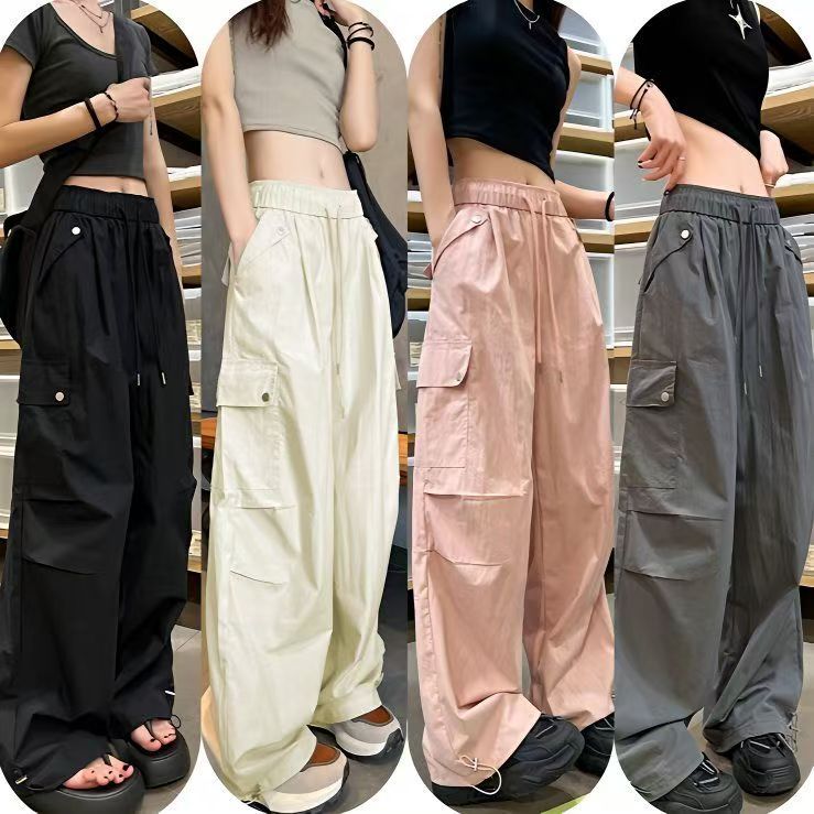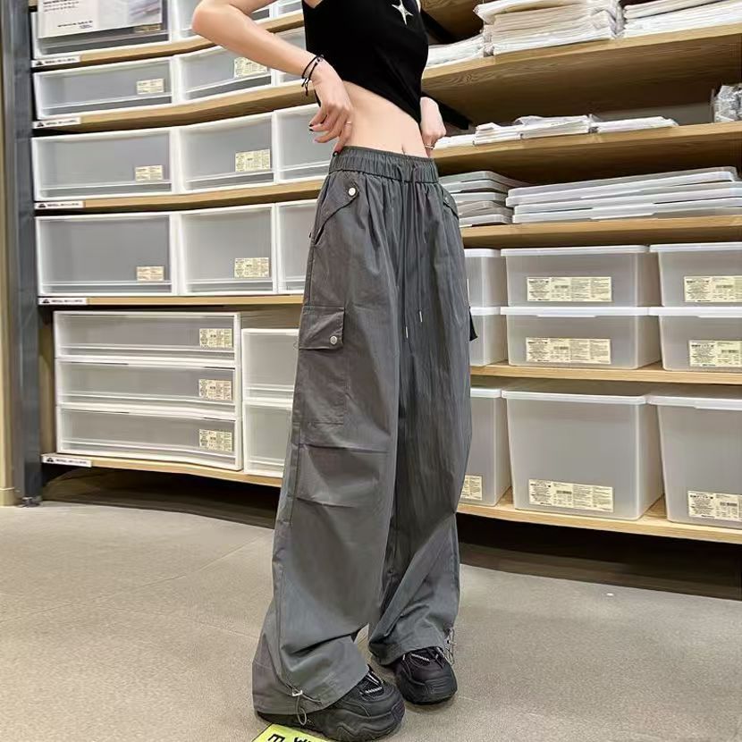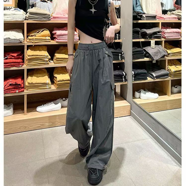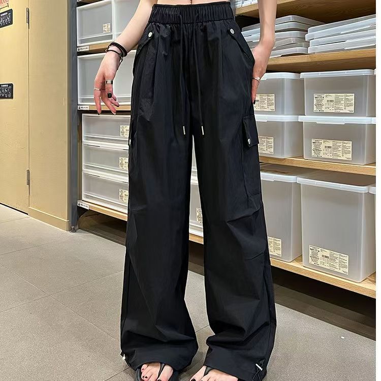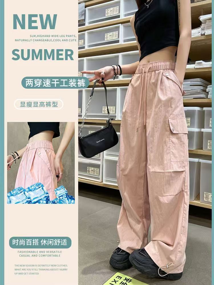 얇고 기모 미국 낙하산 바지 여성의 가을과 겨울 새로운 높은 허리 느슨한 빠른 건조 등산 와이드 레그 바지스토어 가기