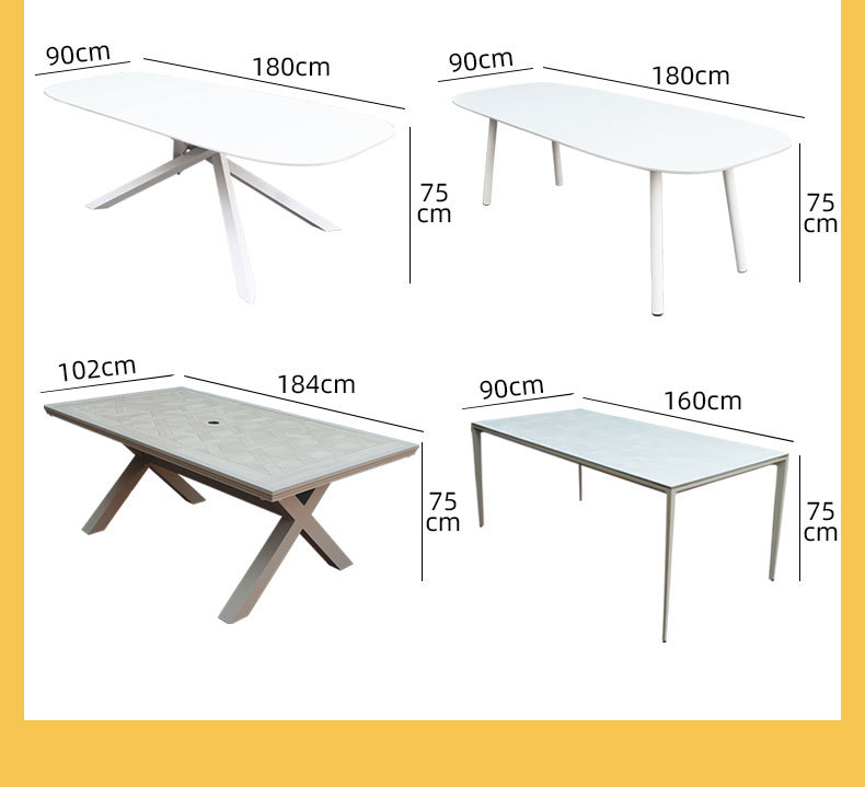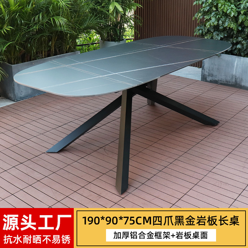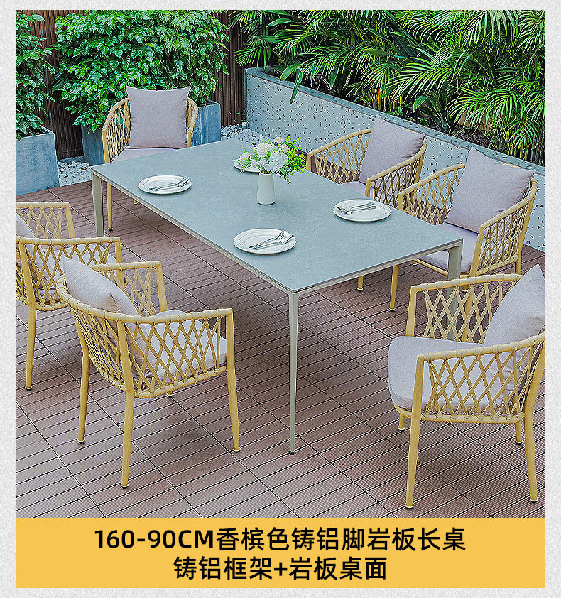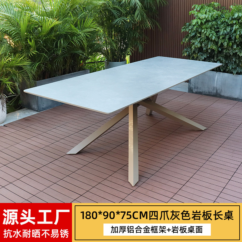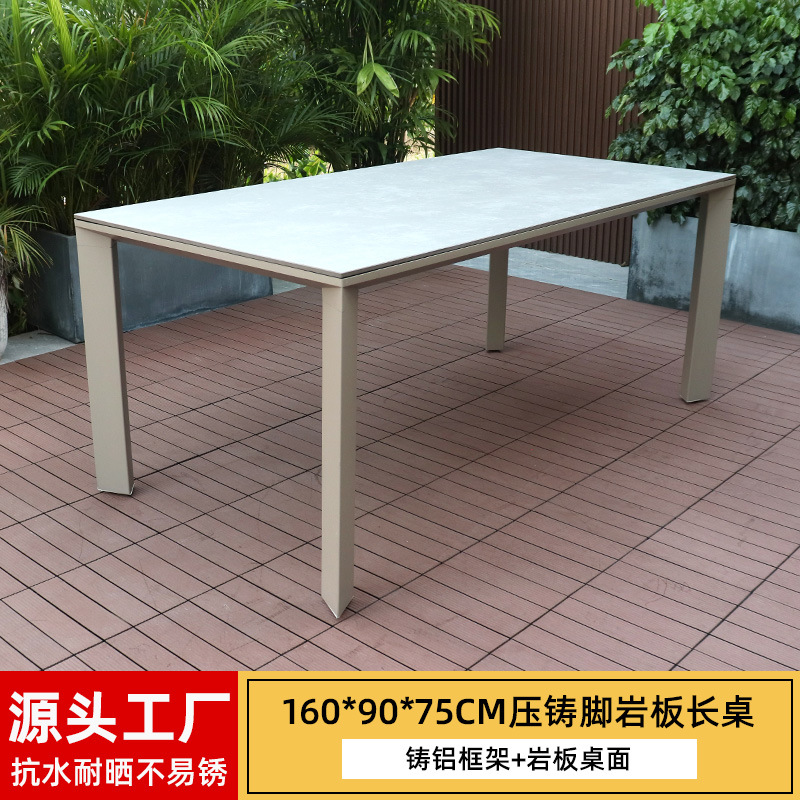 • 160*90*75CM 샴페인 컬러 주조 알루미늄 발 바위 판 긴 테이블