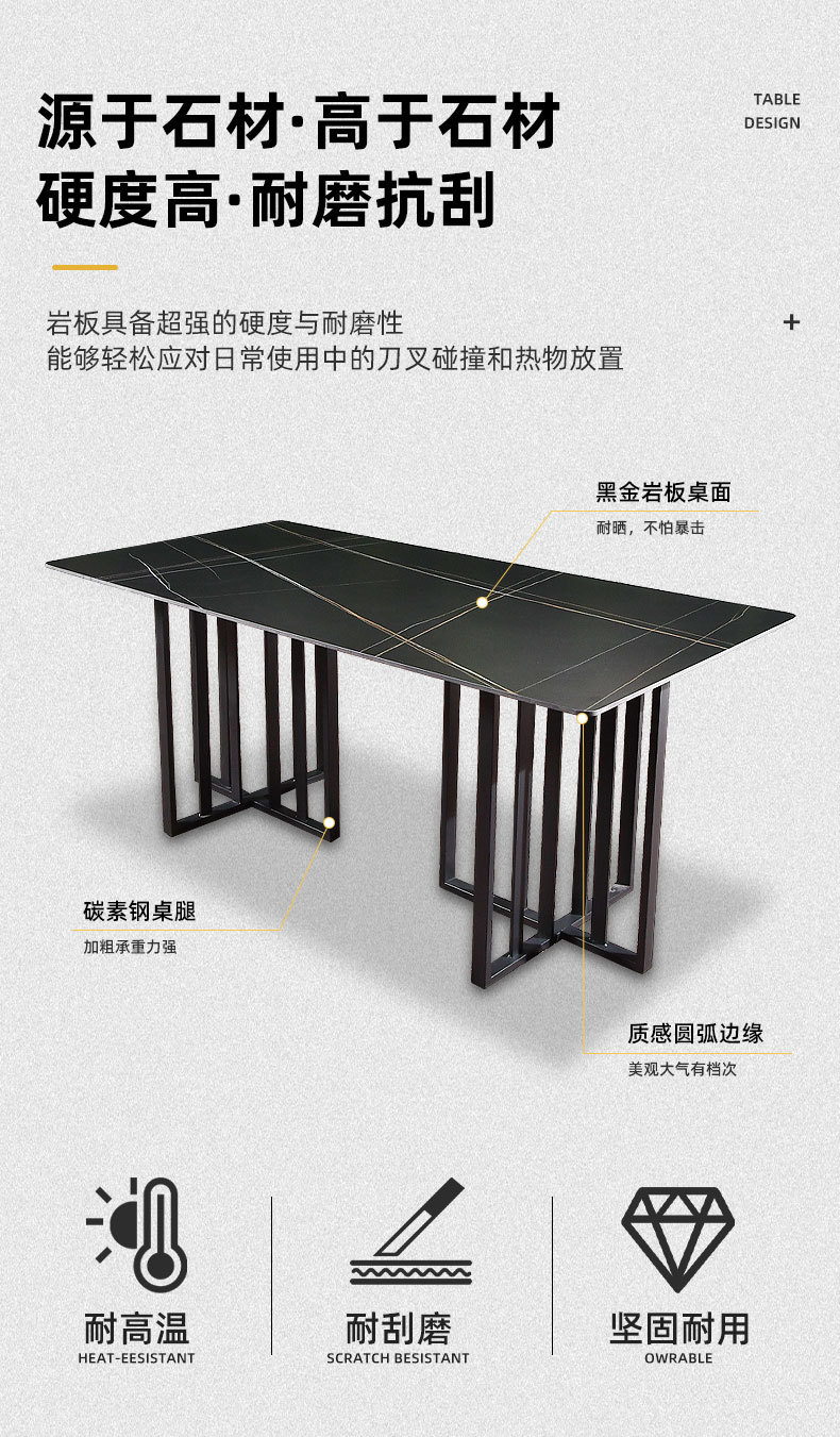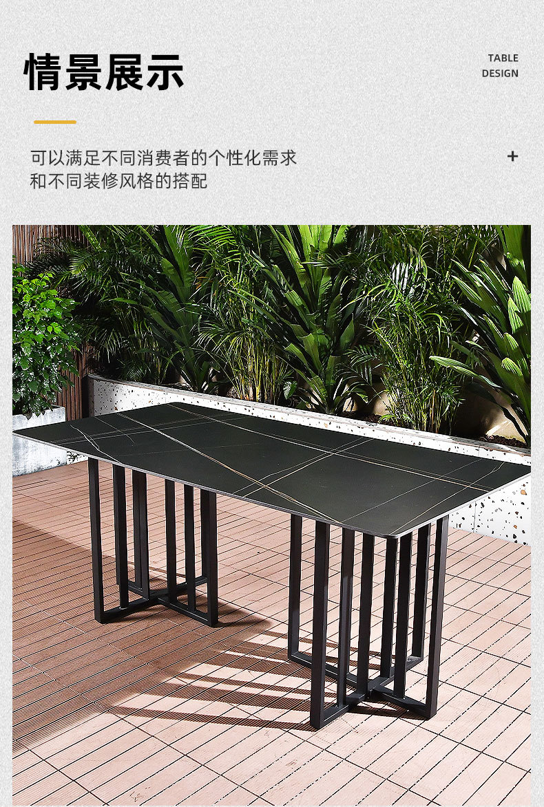 • 80*80*75CM 두꺼운 발 블랙 골드 슬레이트 롱 테이블