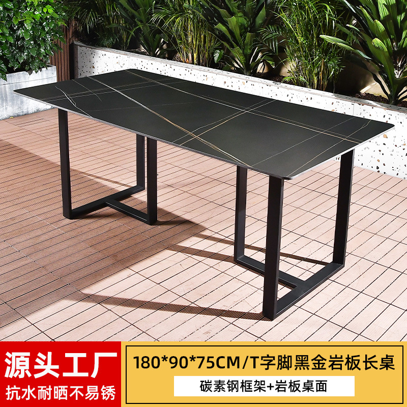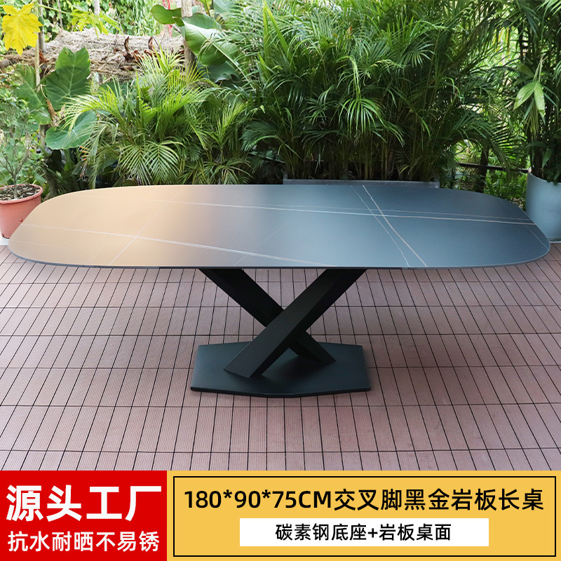 • 180*90*75CM 십자가 다리 블랙 골드 슬레이트 롱 테이블