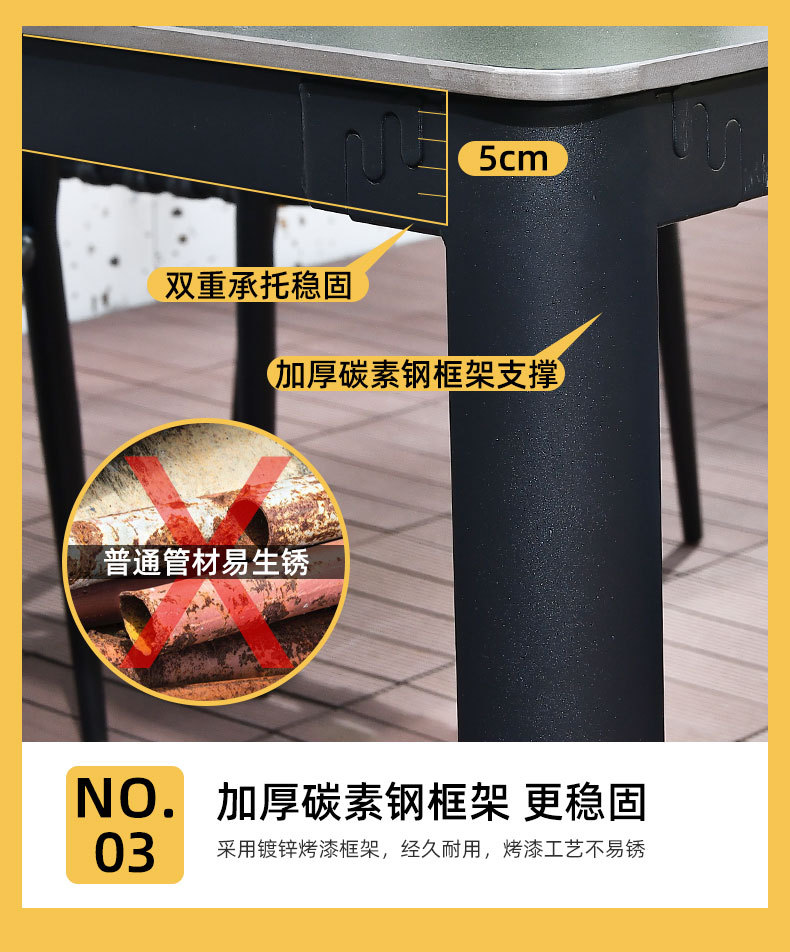 • 160*90*75CM 주조 알루미늄 콘 피트 록 플레이트 롱 테이블