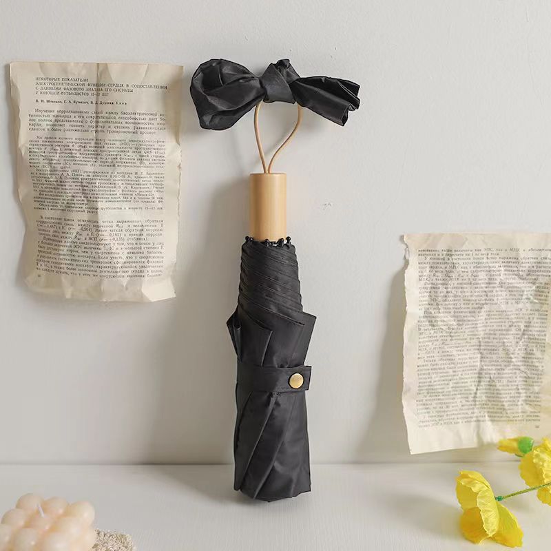 단색 솔리드 우드 핸들 3 배 우산 간단한 패션 맑고 비오는 이중 목적 검은 고무 접히는 우산 높은 색 가치 햇빛 선크림 우산