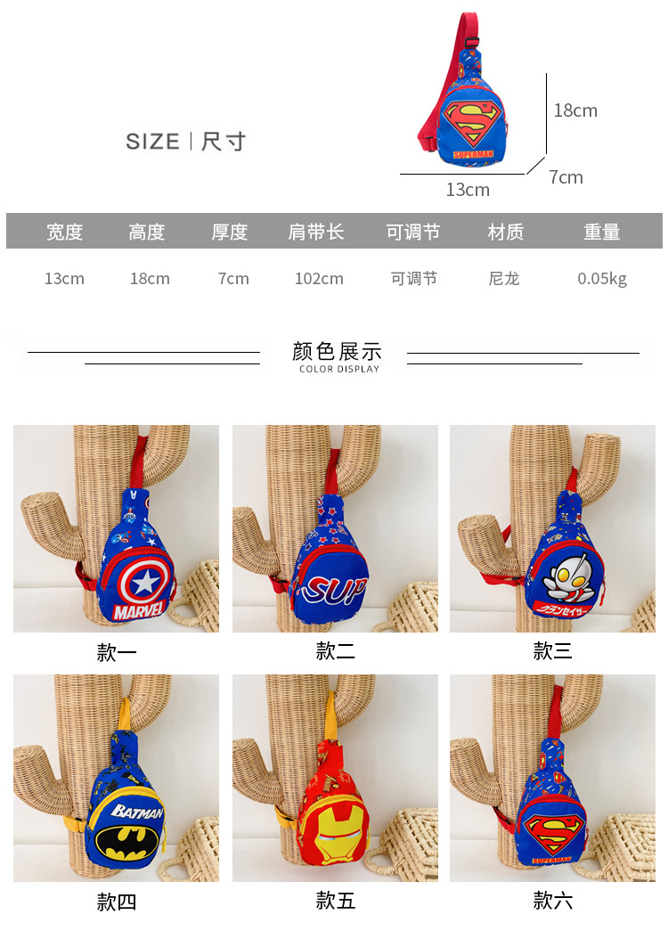 2023 새로운 소년 가슴 가방 마블 영웅 배낭 올해 인기있는 경량 캐주얼 어린이 어깨 크로스 바디 백