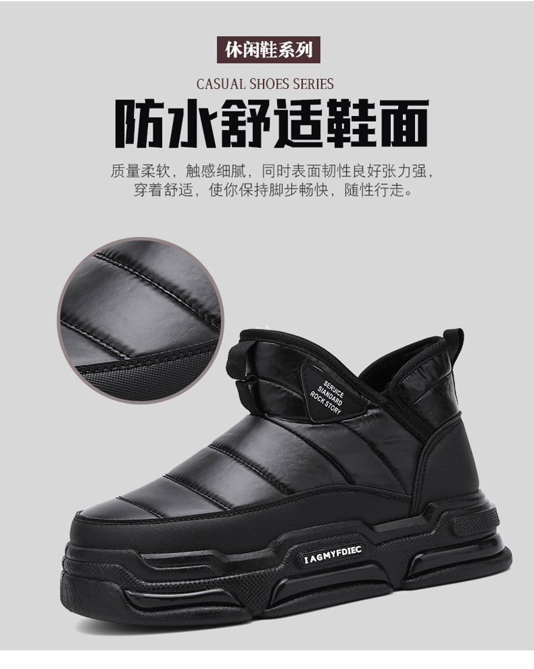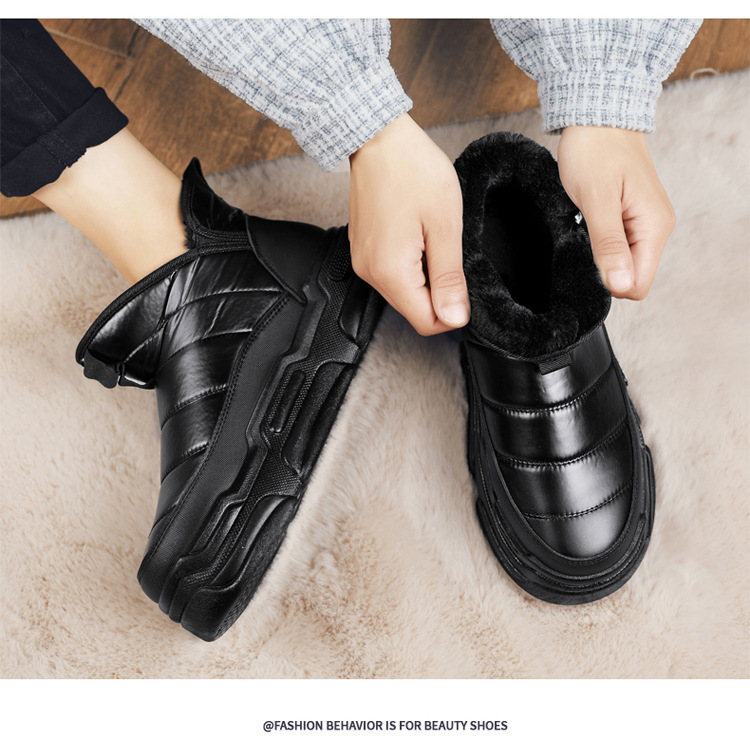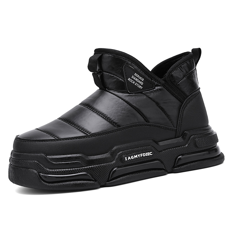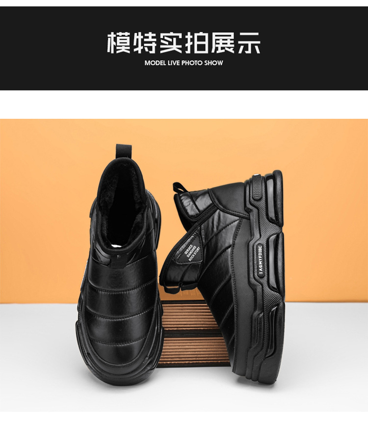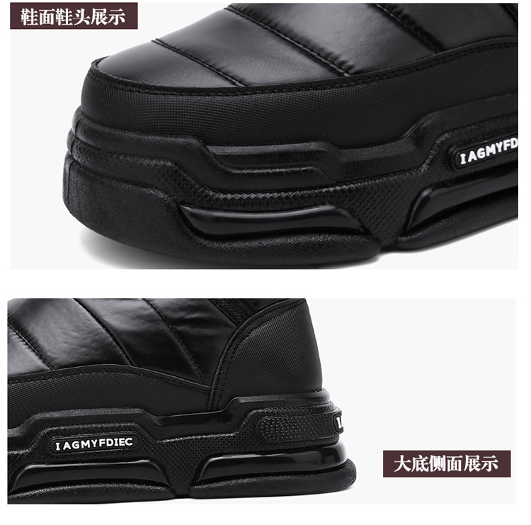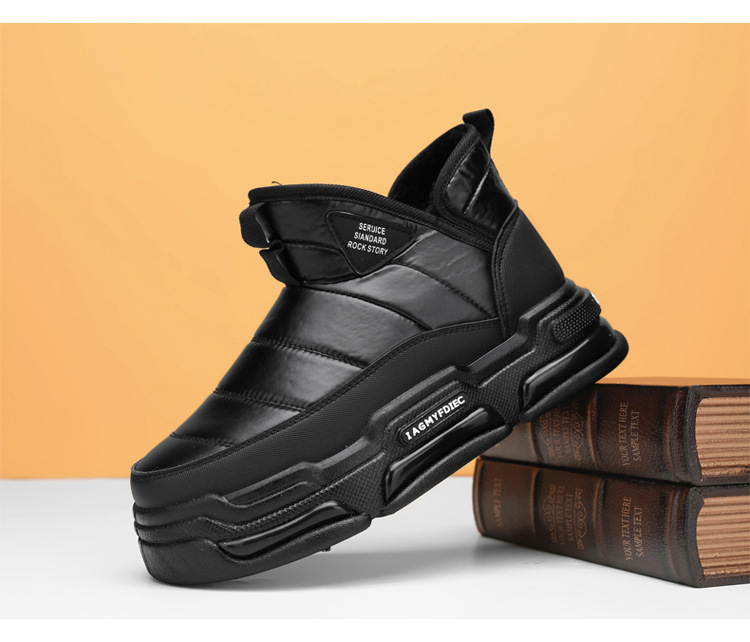 슬립 온 미드 탑 코튼 슈즈 기모 두꺼운 따뜻한 빵 남성 신발 겨울 새로운 두꺼운 밑창 방수 블랙 스노우 부츠