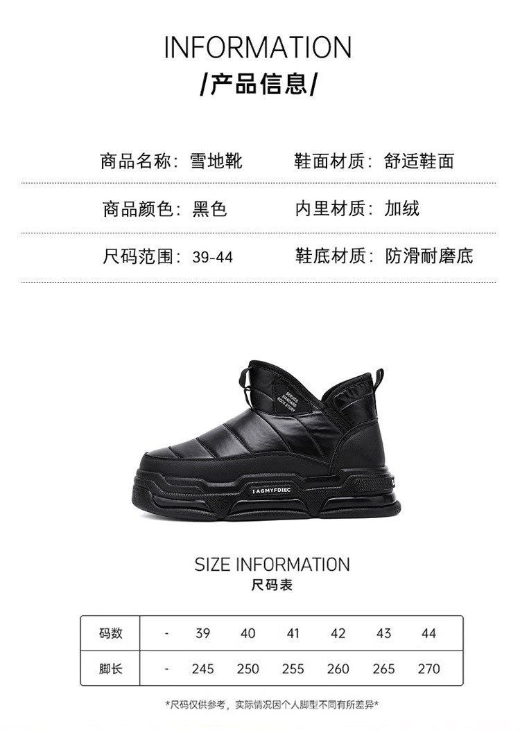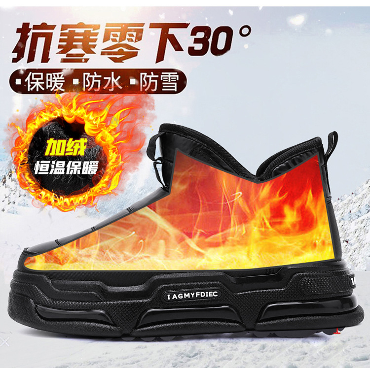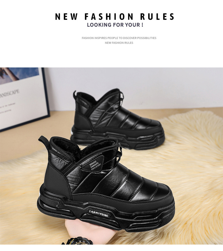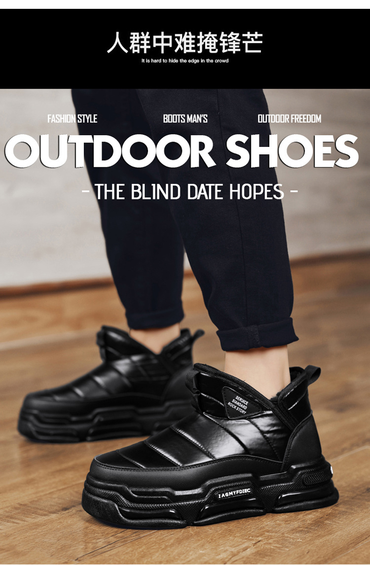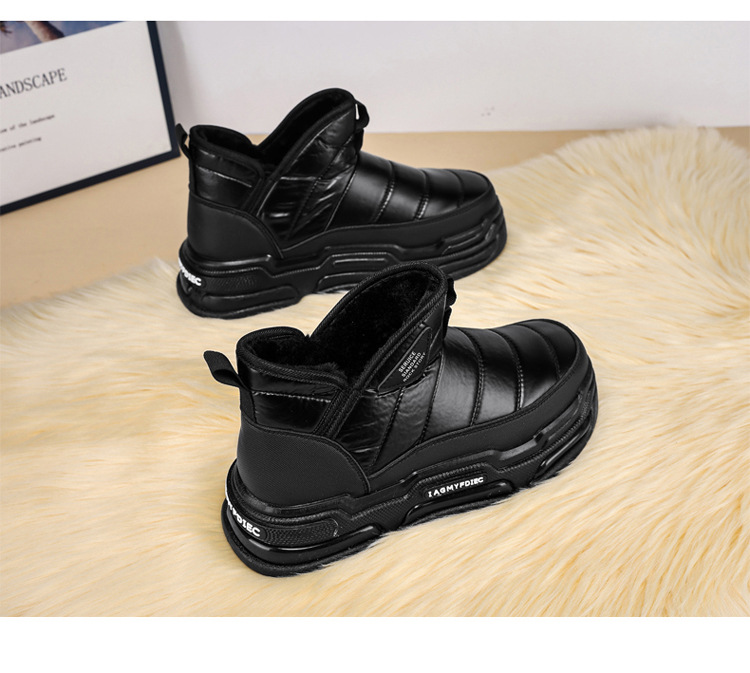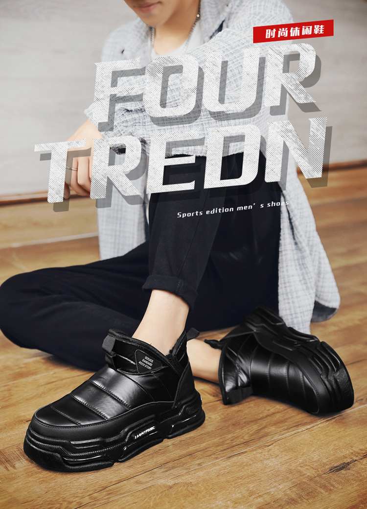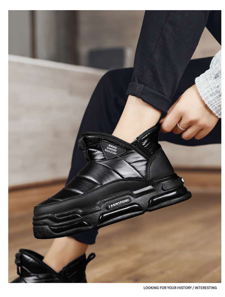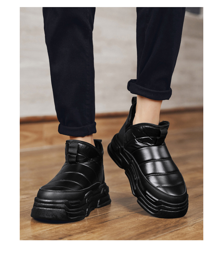 슬립 온 미드 탑 코튼 슈즈 기모 두꺼운 따뜻한 빵 남성 신발 겨울 새로운 두꺼운 밑창 방수 블랙 스노우 부츠스토어 가기
