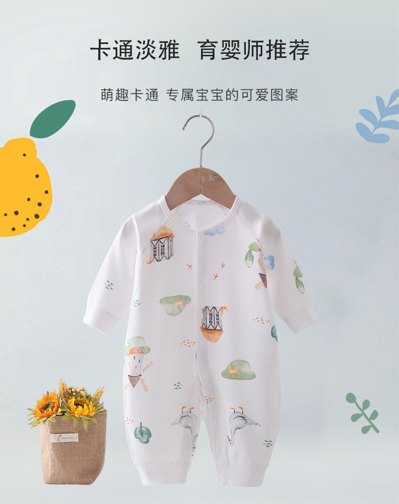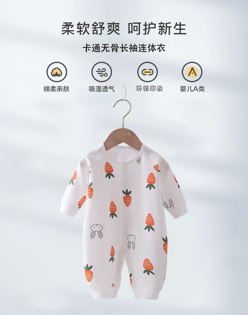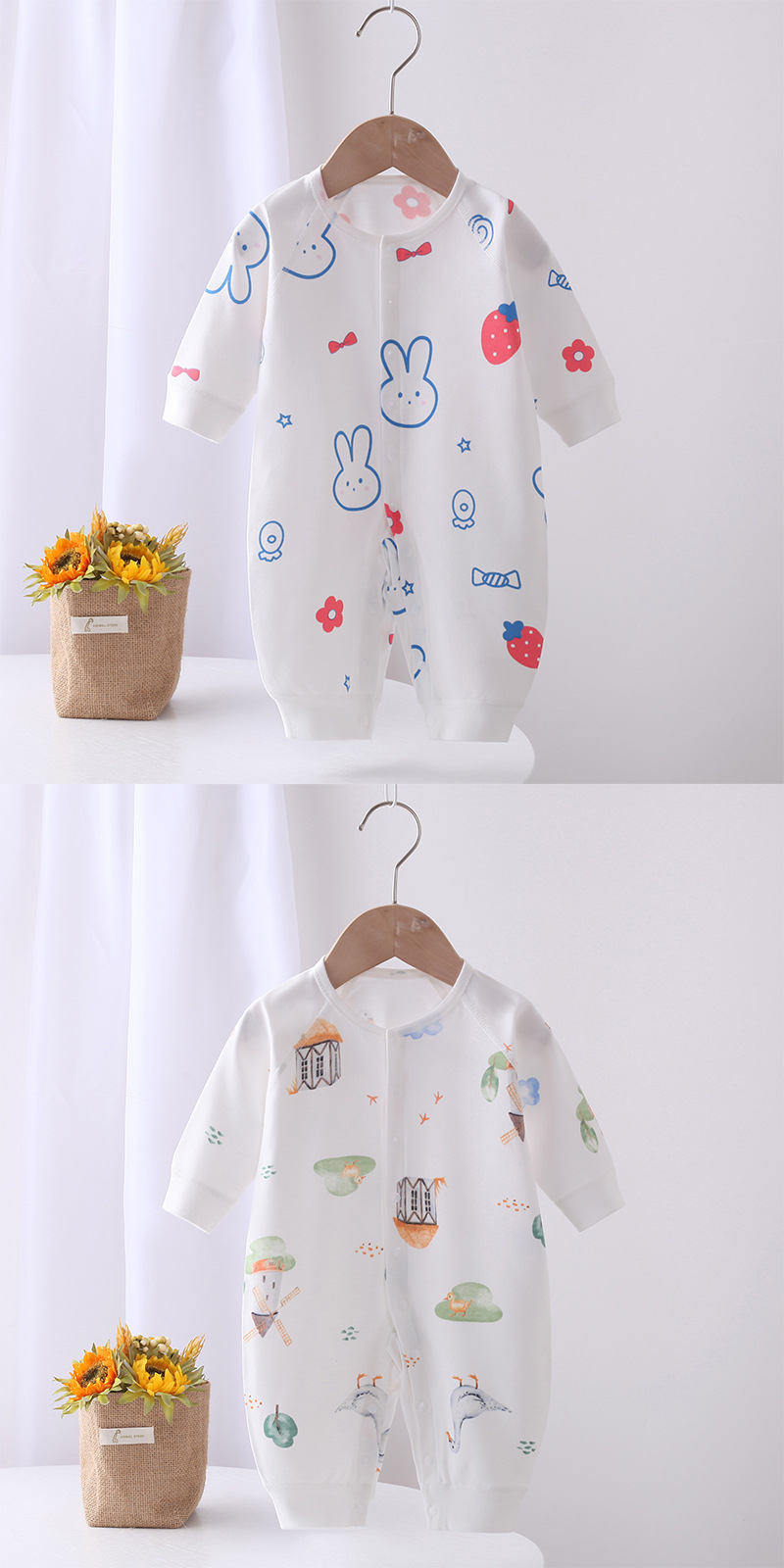봄과 가을 아기 점프 수트 신생아 뼈없는 만화 점프 수트 긴 소매 등반 사계절 세트스토어 가기