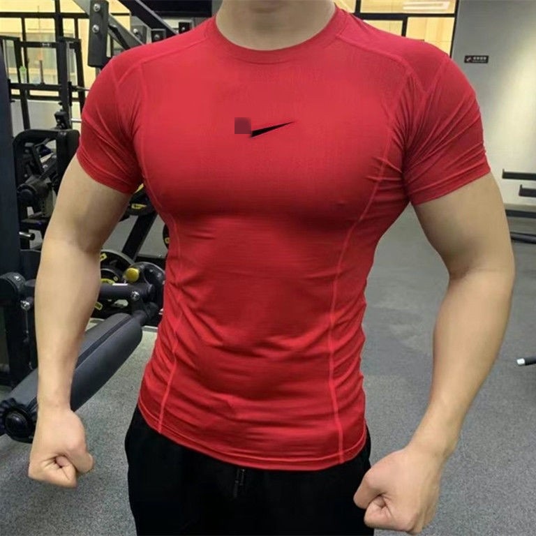 새로운 스포츠 꽉 옷 농구 달리기 피트니스 높은 탄성 짧은 소매 빠른 건조 통기성 트랙 및 필드 달리기 압축 티셔츠스토어 가기
