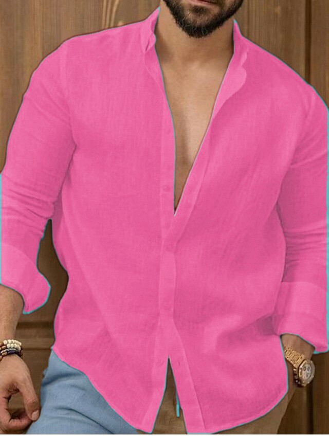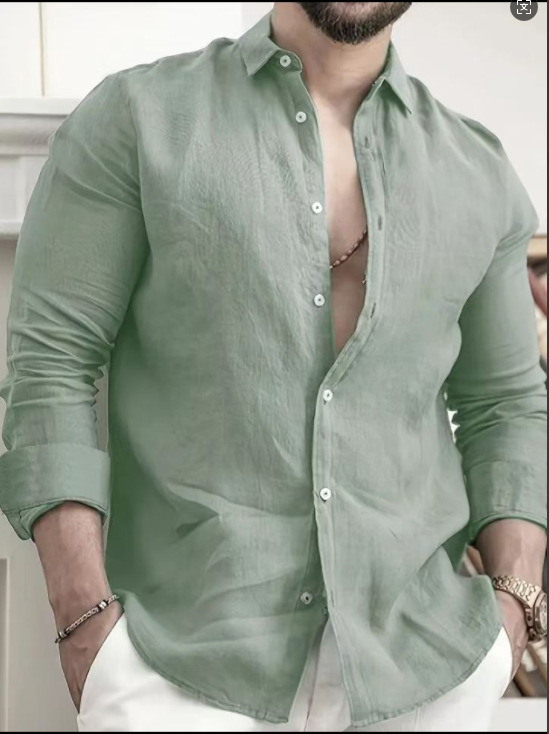 2025 새로운 대외 무역 아마존 유럽과 미국의 새로운 면 및 린넨 솔리드 컬러 남성 패션 셔츠 청소년 캐주얼 긴팔스토어 가기