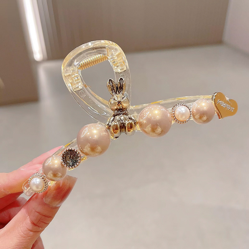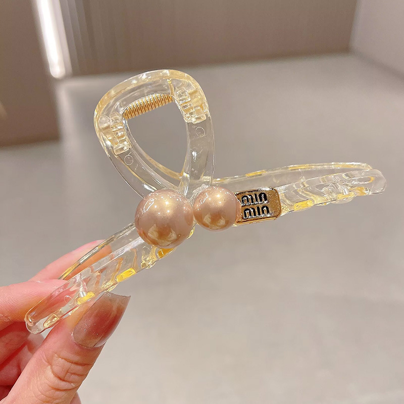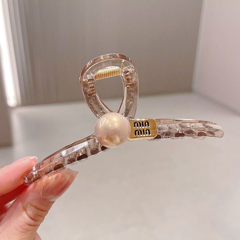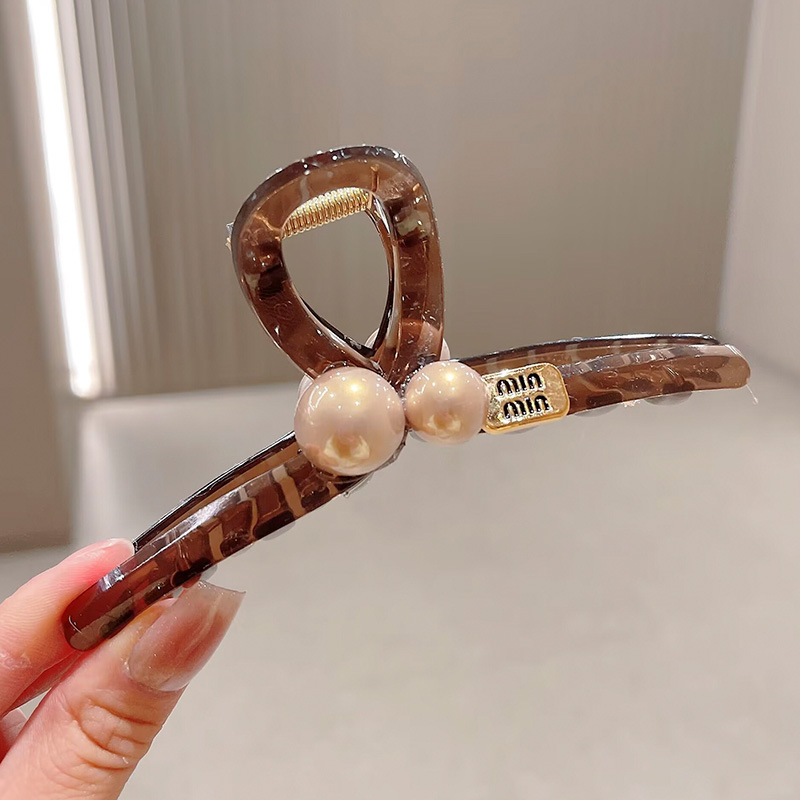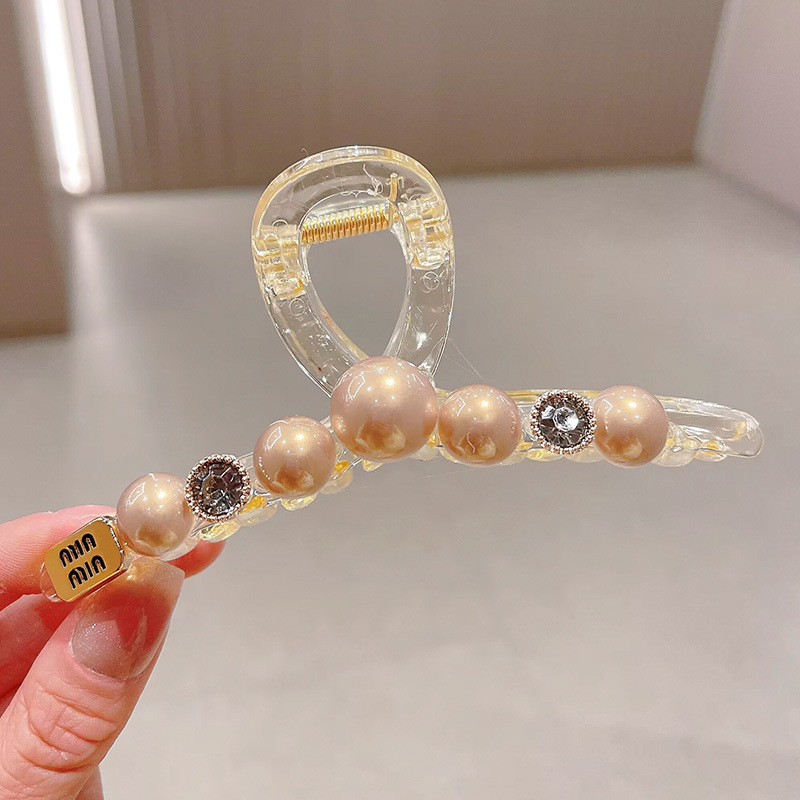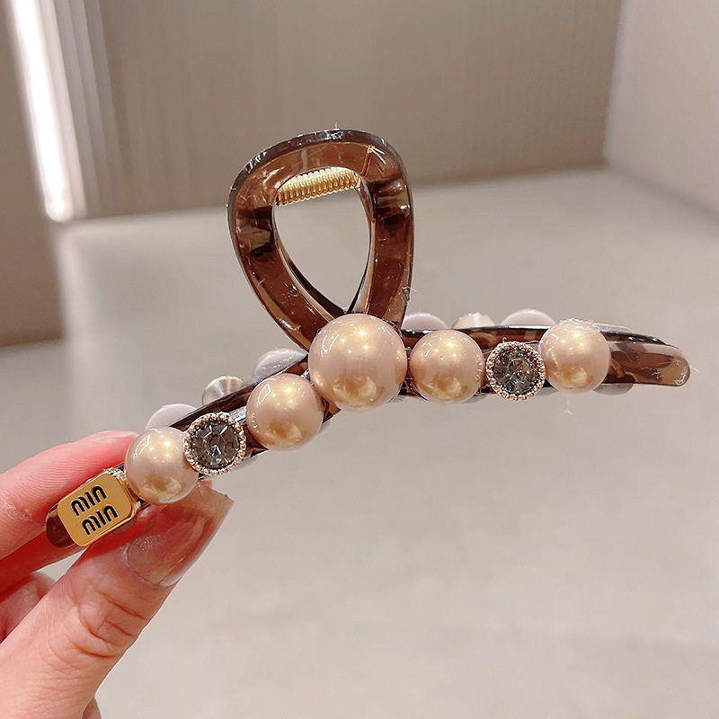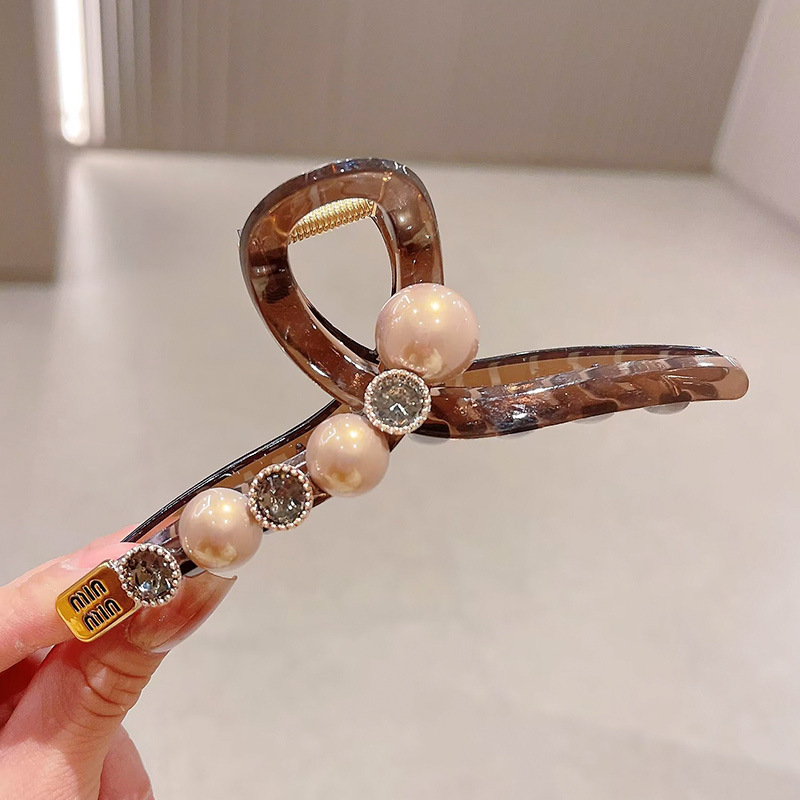 轻奢高级感咖色珍珠水钻抓夹女后脑勺盘发鲨鱼夹大号发夹头饰发卡