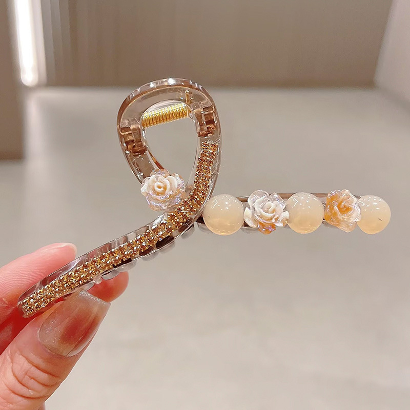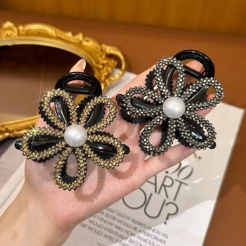 가벼운 고급 고급 꽃 진주 라인스톤 잡아 클립 여성의 머리 머리 상어 클립 큰 머리핀 머리핀 머리핀 머리핀 머리핀