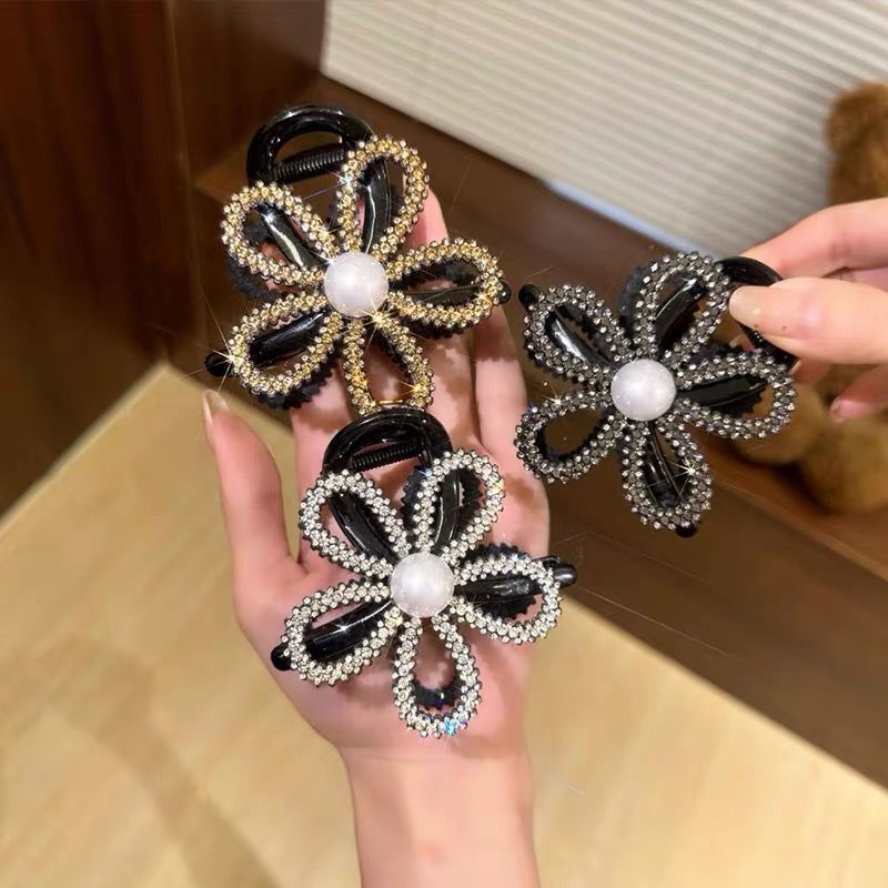 가벼운 고급 고급 꽃 진주 라인스톤 잡아 클립 여성의 머리 머리 상어 클립 큰 머리핀 머리핀 머리핀 머리핀 머리핀스토어 가기